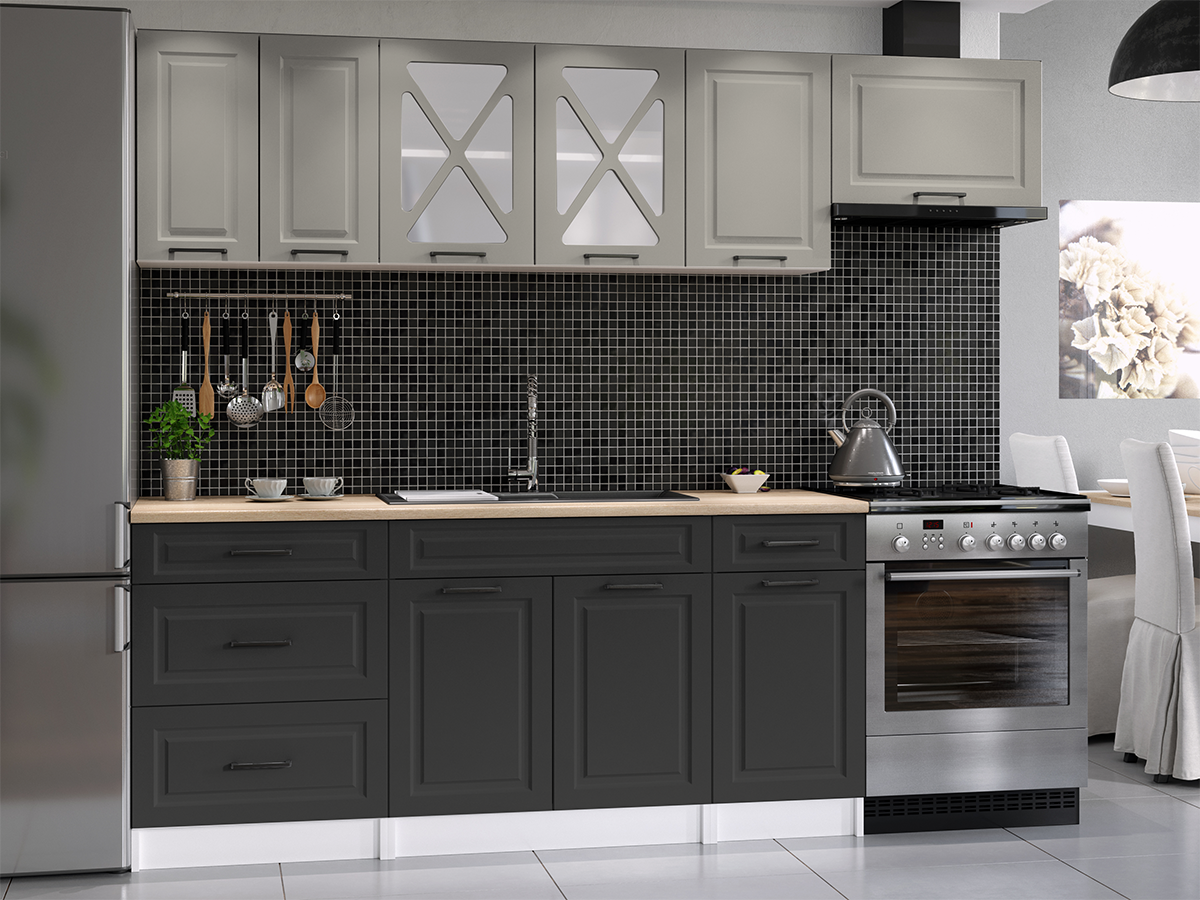 Domů Nábytek Kuchyně Kuchyňské linky FRONTI Kuchyňská linka MARGID 240cm - Kamenný + grafit