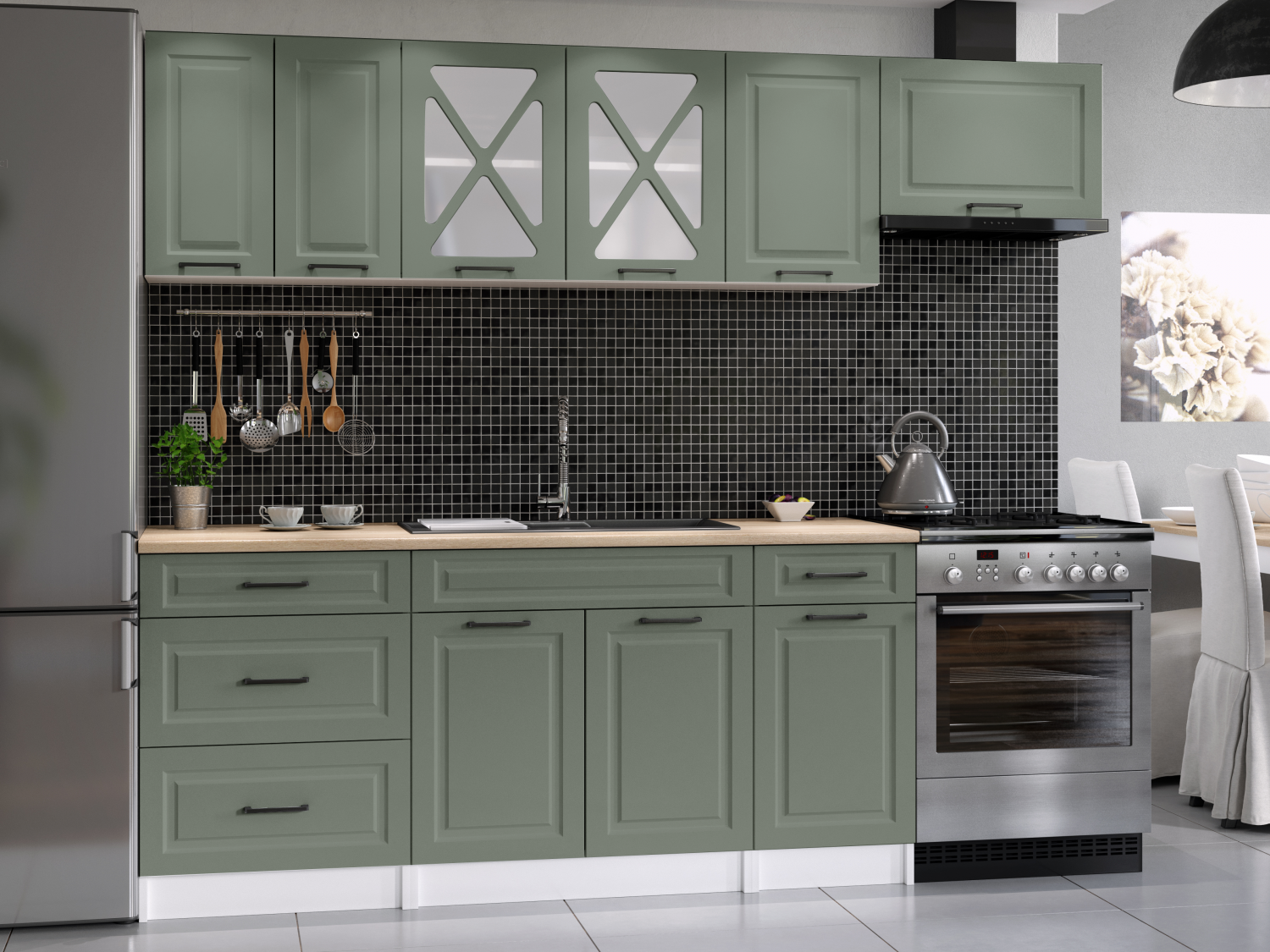 Domů Nábytek Kuchyně Kuchyňské linky FRONTI Kuchyňská linka MARGID 240cm - Olive