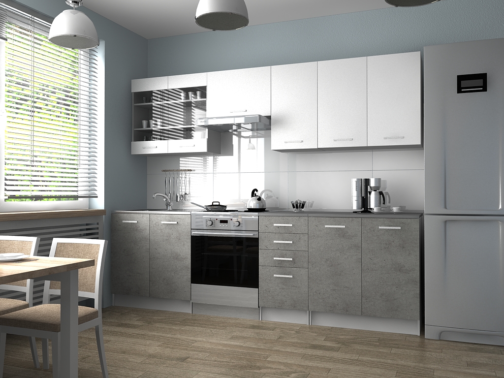 Domů Nábytek Kuchyně Kuchyňské linky FRONTI Kuchyňská linka PAMELA 260x200 - Bílá + beton - Rychle dodání