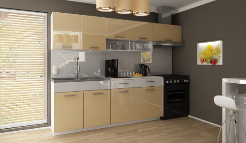 Domů Nábytek Kuchyně Kuchyňské linky FRONTI Kuchyňská linka SAMANTA 240/180 - Vanilka + bílý lesk