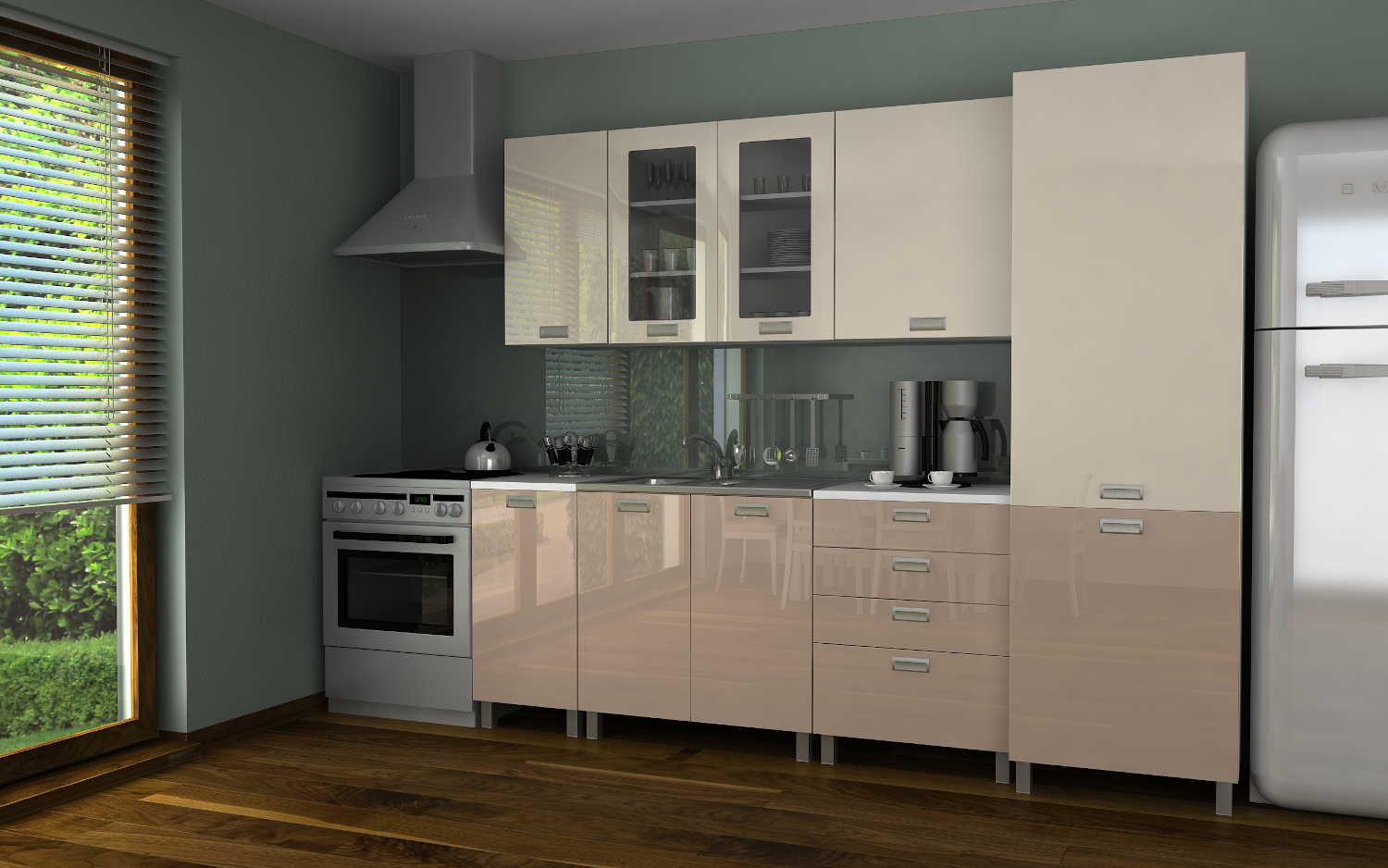 ROZMĚRY: Šířka spodních skříněk: 240 cm Výška spodních skříněk: 86 cm (2,8 cm pracovní deska / 10 cm nohy) Hloubka spodních skříněk: 50 cm Hloubka pracovní desky: 60 cm Šířka horních skříněk: 240 cm Výška horních skříněk: 72 cm hloubka horních skříněk: 30 cm