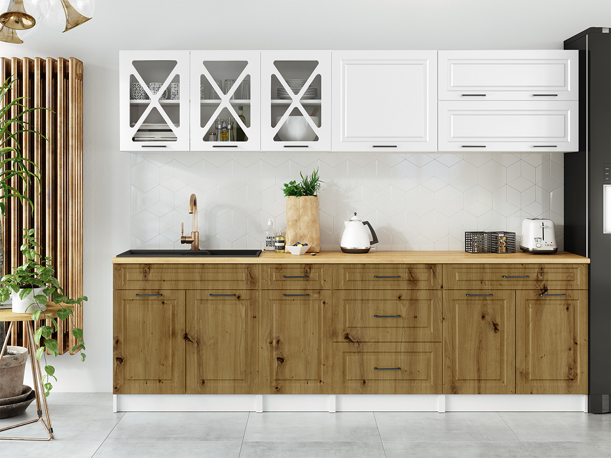 FRONTI Kuchyňská linka TURID 260cm - Bílá + dub artisan