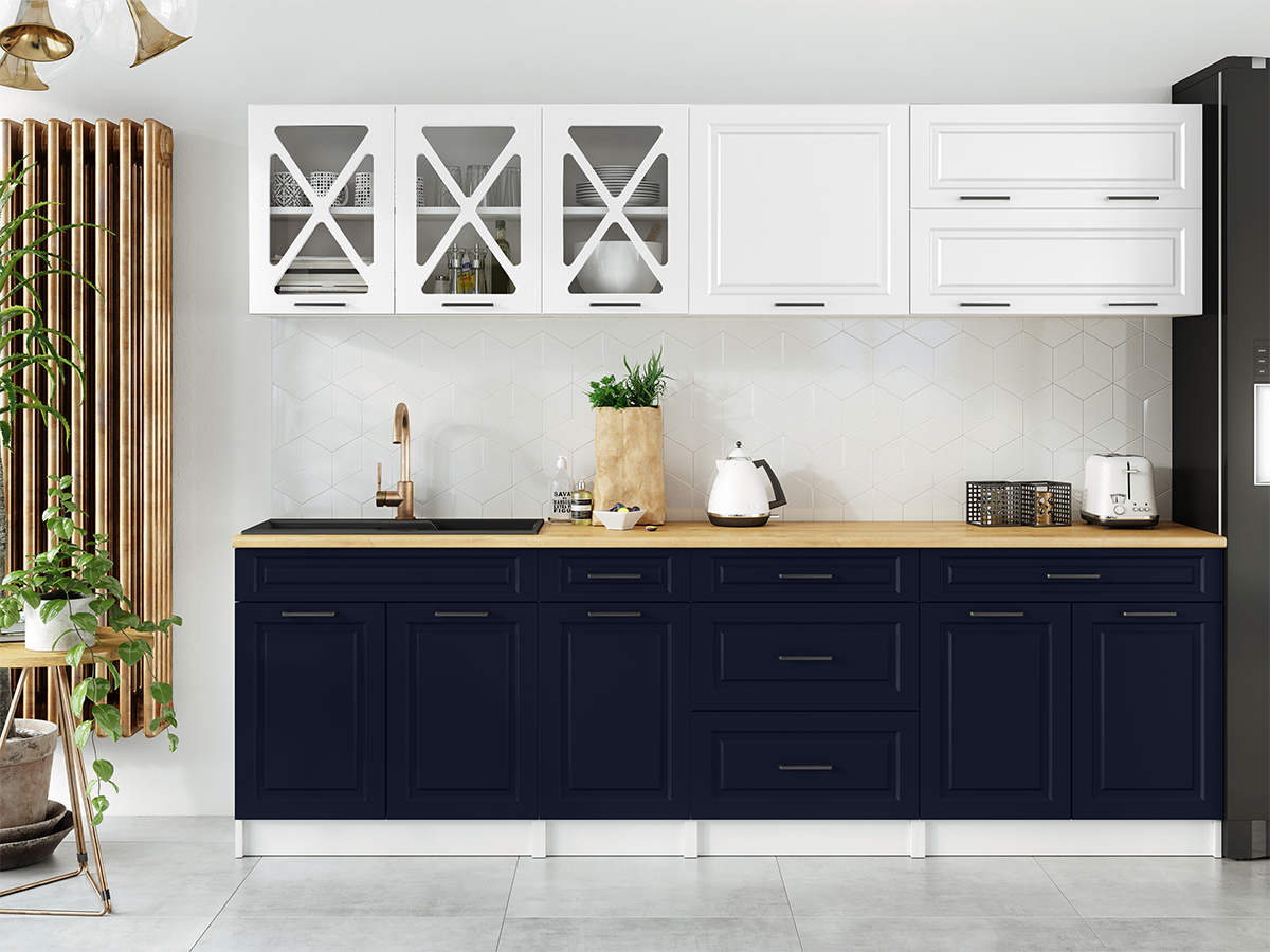 FRONTI Kuchyňská linka TURID 260cm - Bílá + marine blue