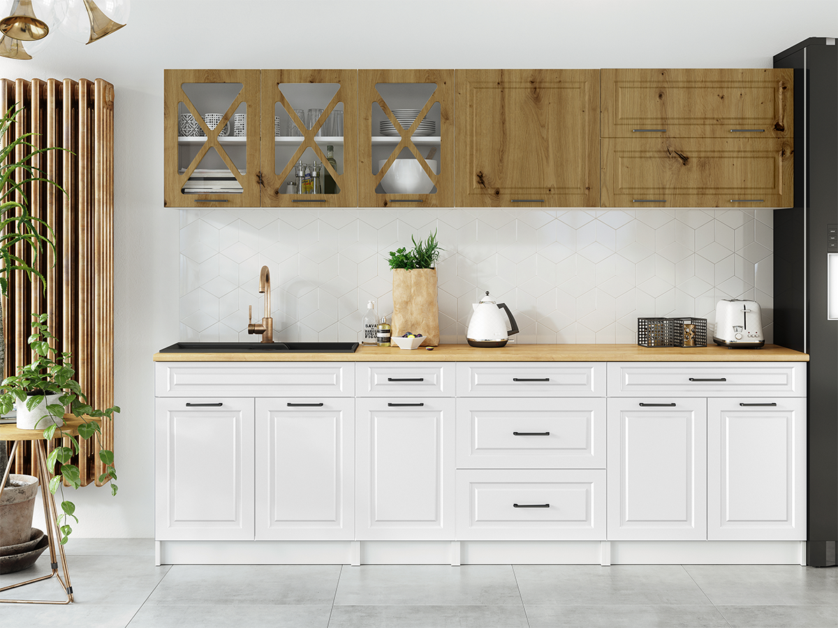 Domů Nábytek Kuchyně Kuchyňské linky FRONTI Kuchyňská linka TURID 260cm - Dub artisan + bílá