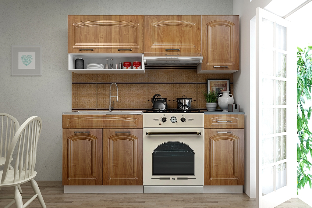 ROZMĚRY: Spodní skříňky šířka: 120 cm Šířka horních skříněk: 180 cm Výška spodních skříněk: 86 cm (2,8 cm pracovní deska / 10 cm sokl) Výška horních skříněk: 58 cm Hloubka horních skříněk: 30 cm Hloubka spodních skříněk: 45 cm Hloubka pracovní desky: 60 c
