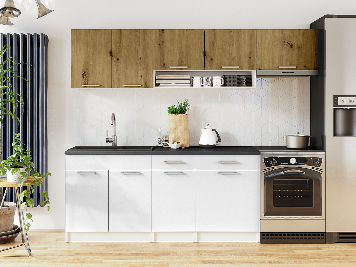 Domů Nábytek Kuchyně Kuchyňské linky FRONTI Kuchyňská linka VIVIEN 240cm - Dub artisan + bílá