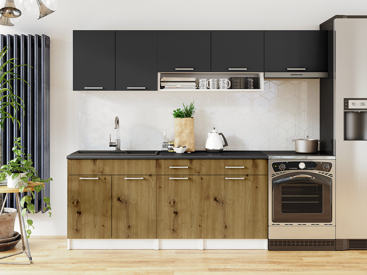 Domů Nábytek Kuchyně Kuchyňské linky FRONTI Kuchyňská linka VIVIEN 240cm - Grafit + dub artisan