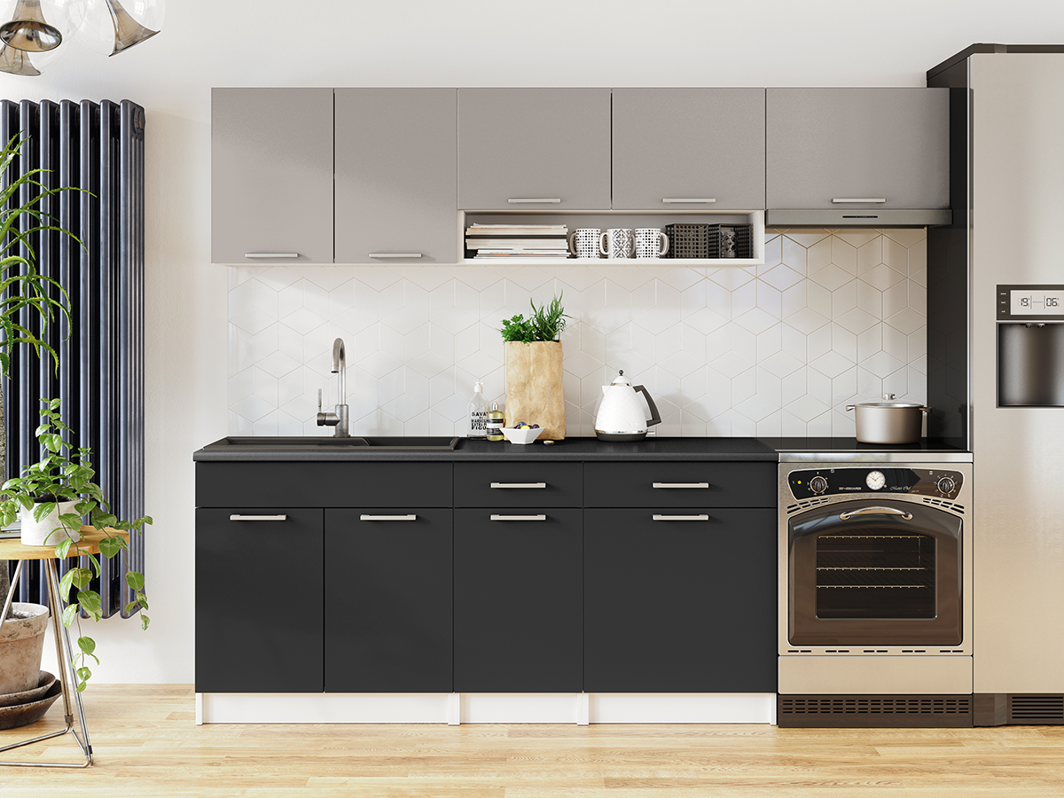 Domů Nábytek Kuchyně Kuchyňské linky FRONTI Kuchyňská linka VIVIEN 240cm - Kamenný + grafit