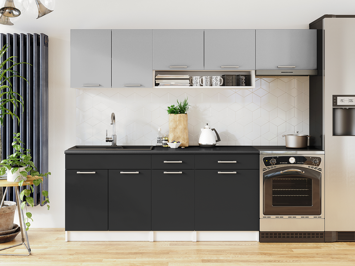 Domů Nábytek Kuchyně Kuchyňské linky FRONTI Kuchyňská linka VIVIEN 240cm - Popel + grafit