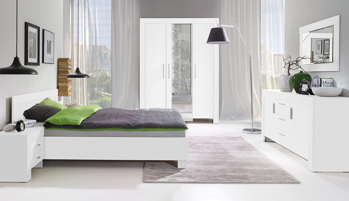 Komponenty sady (šířka / výška / hloubka): CEZAR 21 noční stolky 2x (50/48/35) CEZAR 22 postel (166/83/206) Šatní skříň CEZAR 1 (150/201/61) komoda CEZAR 13 (170/85/42) CEZAR 20 zrcadlo (100/46)