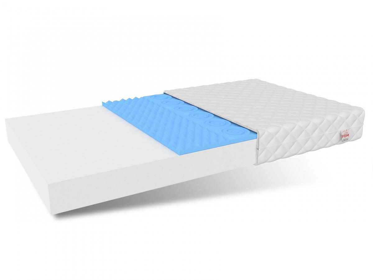 Specifikace: tvrdost: H3 středně tvrdá tloušťka: 10 cm Složení: profilovaná pěna N25: 2 cm polyuretanová pěna T25: 7 cm obal: 1 cm