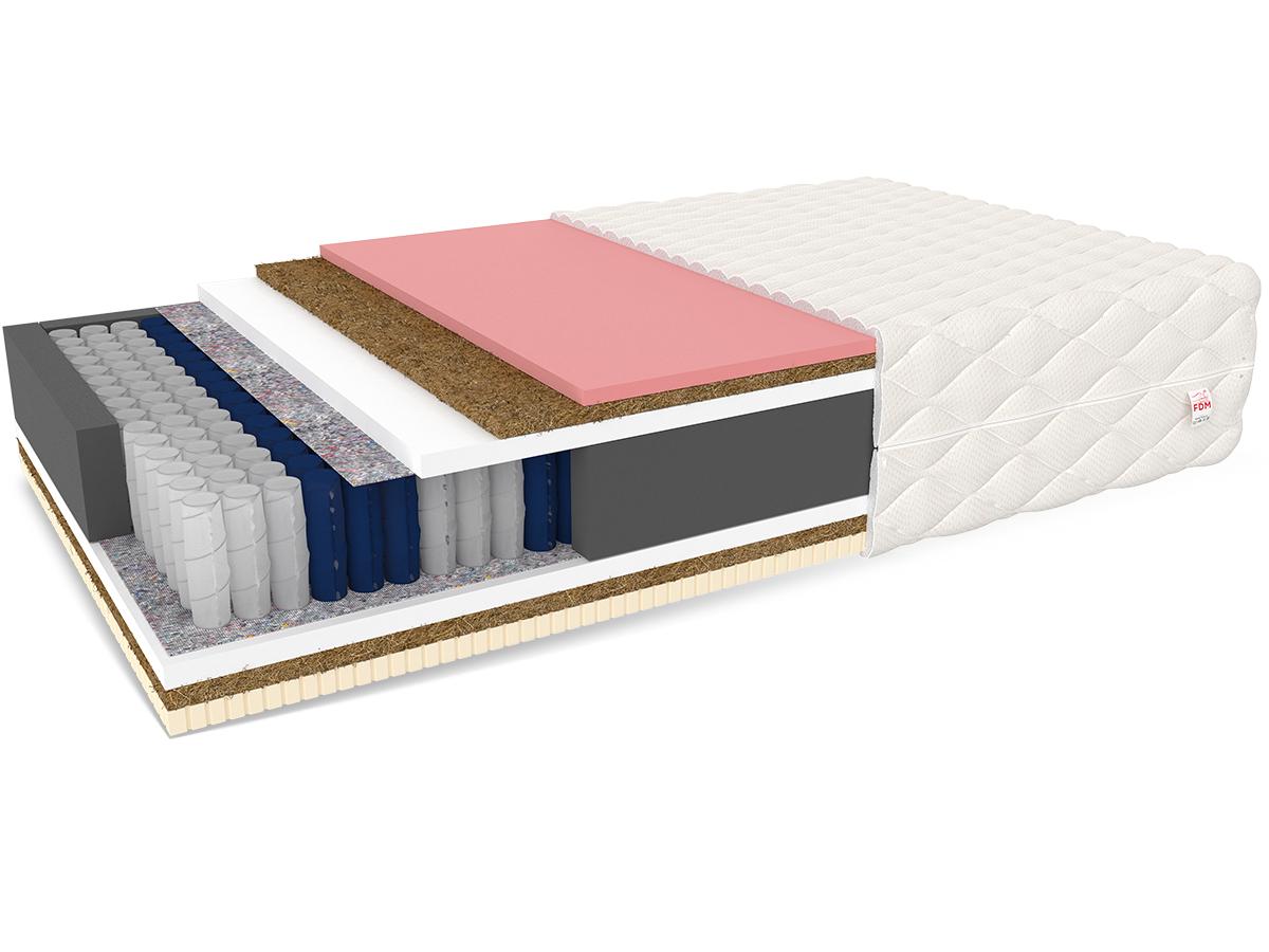 Specifikace: tvrdost: H4 tvrdá tloušťka: 29 cm Složení: Perforovaný latex: 2 cm kokosová vložka: 1 cm polyuretanová pěna T25: 2 cm obal: 1 cm výška pružiny: 18 cm termoplastická pěna VISCO: 2 cm polyuretanová pěna T25: 2 cm kokosová vložka : 1 cm
