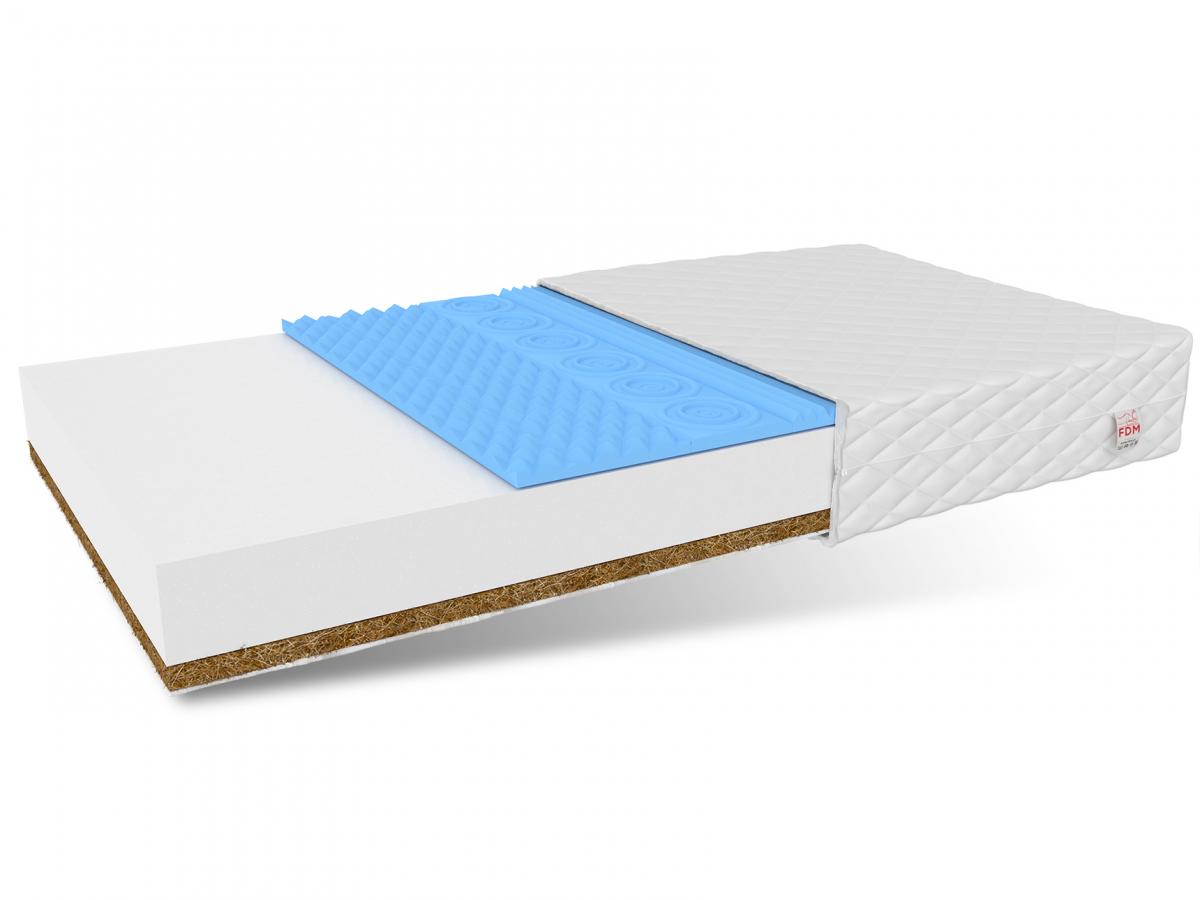 Specifikace: tvrdost: H2 středně měkká H4 tvrdá tloušťka: 11 cm Složení: Klimatizační vlákno: 1 kus Kokosová vložka: 1 cm N25 profilovaná pěna: 2 cm, T25 polyuretanová pěna: 7 cm Obal: 1 cm.
