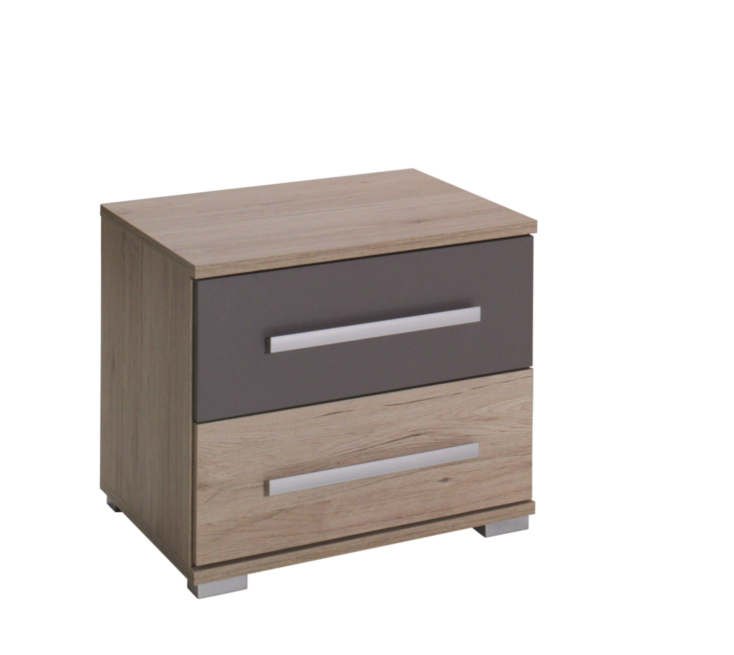 Rozměry: výška 40 cm šířka 45 cm hloubka 40 cm Barva: san remo / šedá Ložnice "Dione" je nejnovější nabídkou z továrny na nábytek Maridex. Zahrnuje řadu praktických prvků, včetně prostorné skříně s posuvnými dveřmi, LED osvětlením a hliníkovými bočními profily, stejně jako pohodlná postel se zvýšeným rámem a nádobou na ložní prádlo, komoda a noční stolky. Systém je vyroben z vysoce kvalitní laminované desky San Remo. ABS hrana chrání hrany před mechanickým poškozením. Prvky systému jsou ideální pro vybavení moderní ložnice. Osvětlení použité ve skříni a výběr vhodných doplňků vytvoří jedinečný a útulný interiér.