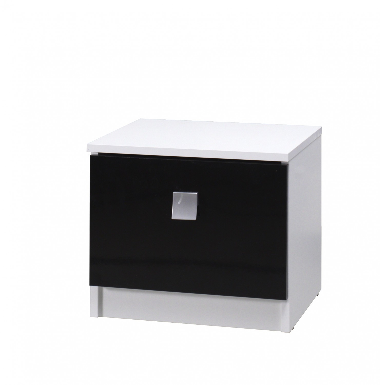 Rozměry: výška 36 cm šířka 41 cm hloubka 35 cm Barva: bílý / černý lesk Ložnice Lux je moderní kombinací nábytku v odvážných kontrastních barvách - bílé a černé. K sadě si můžeme vybrat také prostornou skříň Lux. Sada je vyrobena z laminované desky, hrany nábytku jsou chráněny ABS hranami. Tloušťka korpusu a čel je 16 mm. Nábytek Lux vám umožní vytvořit moderní uspořádání odkazující na nejnovější trendy v interiérovém designu.