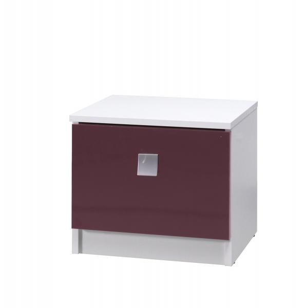 Rozměry: výška 36 cm šířka 41 cm hloubka 35 cm Barva: bílý / fialový lesk Ložnice Lux je moderní kombinací nábytku v odvážných kontrastních barvách - bílé a černé. K sadě si můžeme vybrat také prostornou skříň Lux. Sada je vyrobena z laminované desky, hrany nábytku jsou chráněny ABS hranami. Tloušťka korpusu a čel je 16 mm. Nábytek Lux vám umožní vytvořit moderní uspořádání odkazující na nejnovější trendy v interiérovém designu.