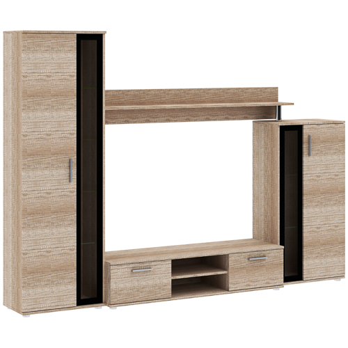 Představujeme obývací sestavu BENTLEY, která se stane dominantou vašeho obývacího pokoje. Sestava nabízí moderní a elegantní design, který kombinuje čisté linie s praktickým úložným prostorem. Díky dvěma barevným variantám si snadno vyberete tu pravou pro váš interiér. Zvolit můžete svěží a moderní bílou, která opticky zvětší prostor a dodá mu lehkost, nebo teplý a útulný dekor country oak, který vnese do vašeho domova kousek přírody a rustikální elegance. Obě varianty jsou navrženy tak, aby se hodily jak do minimalistických, tak do tradičněji zařízených domácností. Sestava BENTLEY se skládá z praktické TV skříňky s otevřenými policemi pro elektroniku a uzavřenými šuplíky, z vysoké vitríny a menší skříňky s prosklenými dvířky. Tyto komponenty poskytují dostatek místa pro vystavení dekorací, knih nebo uschování drobných předmětů. Pro ještě působivější vzhled a vytvoření příjemné atmosféry si můžete k oběma barevným provedením zvolit variantu s LED osvětlením, které decentně podsvítí skleněné police a dodá celku luxusní a moderní nádech. Obývací sestava BENTLEY je ideálním řešením pro ty, kteří hledají stylový a zároveň funkční nábytek. PROVEDENÍ čela z melaminových desek plastové úchytky plastové nožky PVC zakončení hran volitelné LED osvětlení ROZMĚRY Šířka - 257 cm Výška - 183 cm Hloubka - 40 cm Rozměrová torelance +/- 3 cm.