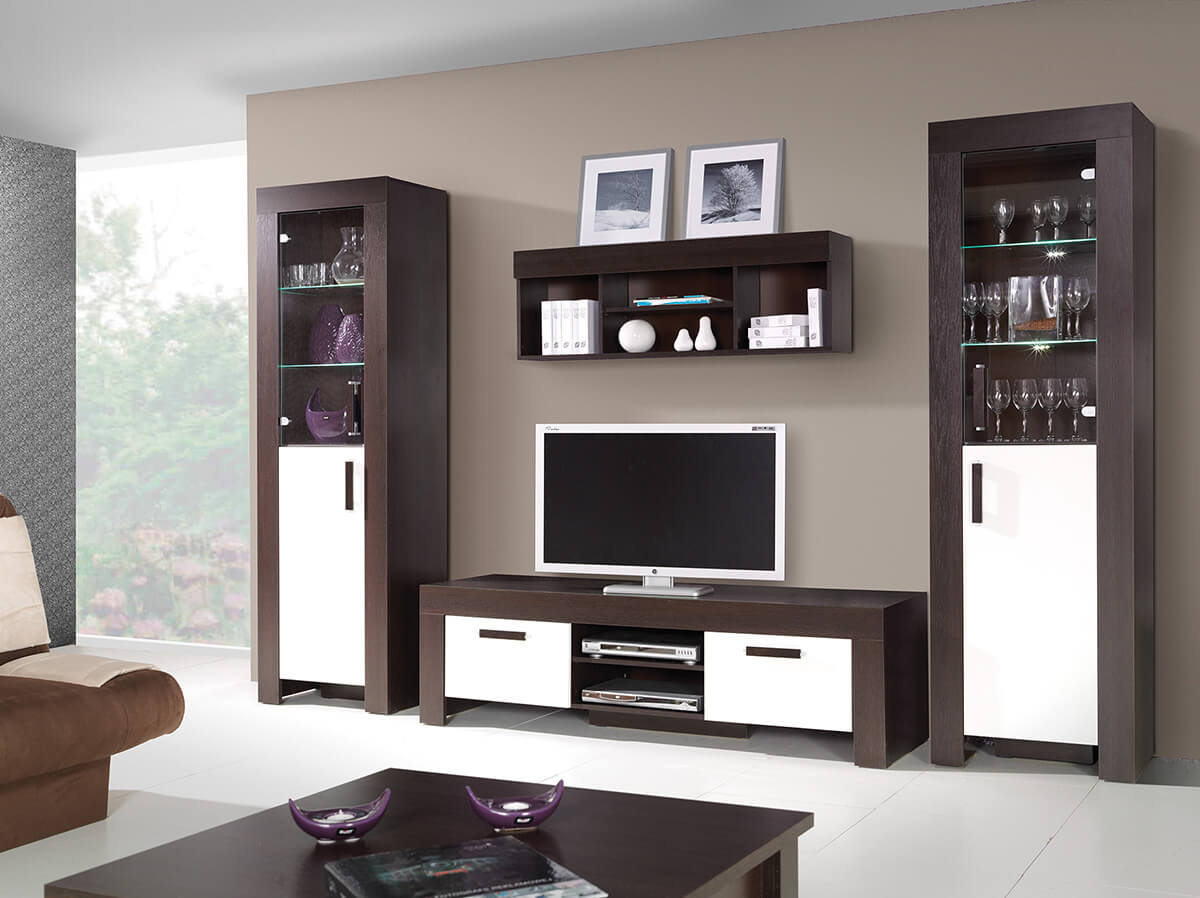 Komponenty sady (šířka / výška / hloubka): Vitrína CEZAR 5 (60/201/42) Vitrína CEZAR 6 (60/201/42) Police CEZAR 27 (120/40/25) CEZAR 14 RTV (170/51/52) CEZAR 19 konferenční stolek (110/48/61)