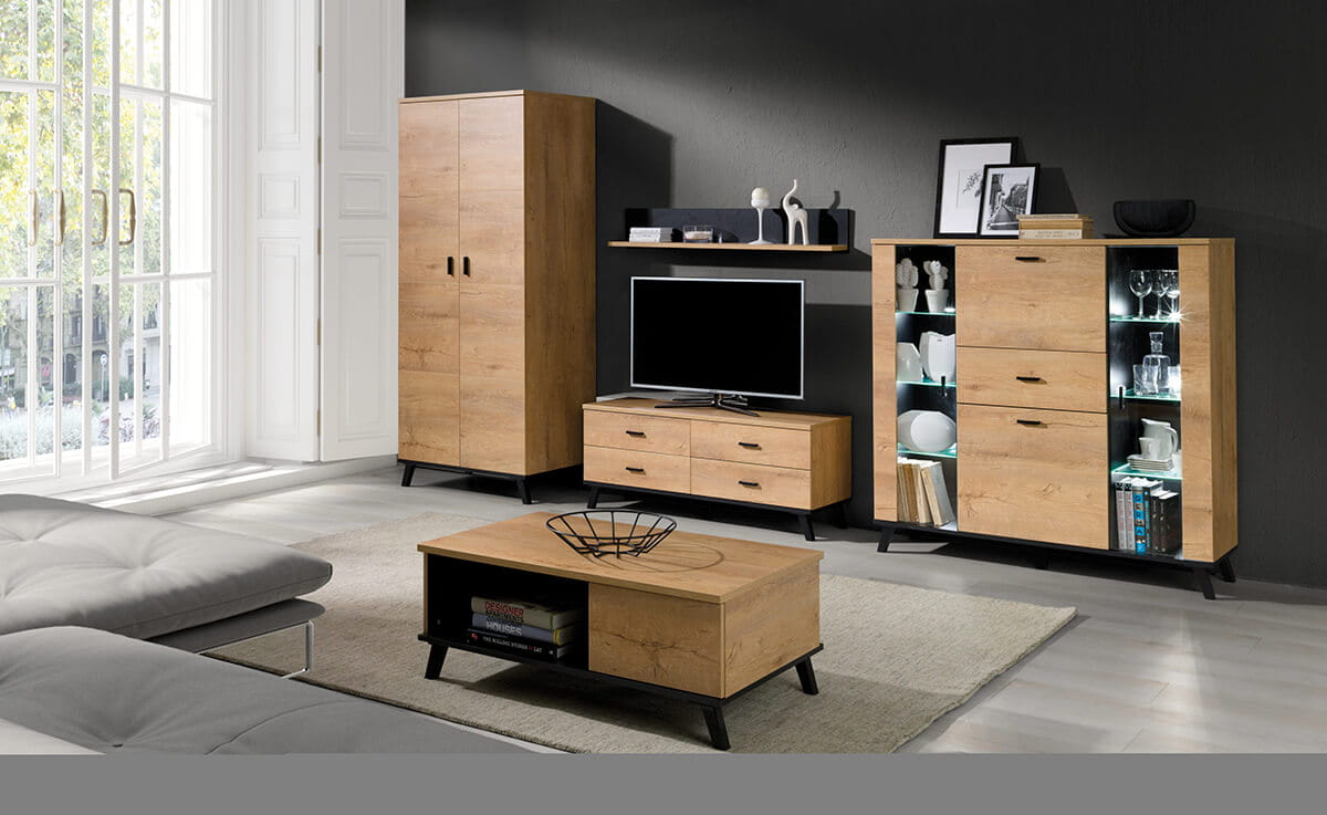 Komponenty sady (šířka / výška / hloubka): Šatní skříň JOHN 1 (81/191/55) JOHN 7 RTV (121/50/40) police JOHN 10 (120/20/18) JOHN 8 konferenční stolek (101/40/61) Komoda JOHN 3 (131/131/40)