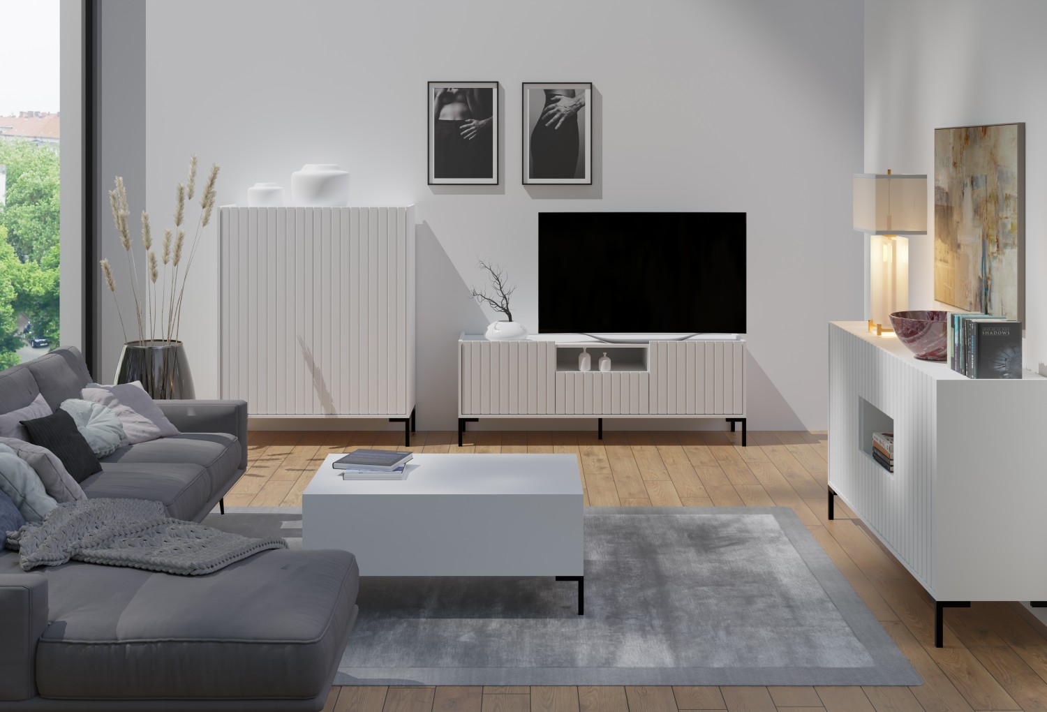 Sestava se skláda z (š/v/h v cm): Komoda LANDO 01 (100/125/40) Komoda LANDO 03 (150/83/40) Televizní stolek LANDO 04 (150/55/40) Konferenční stolek LANDO 05 (105/46/70)