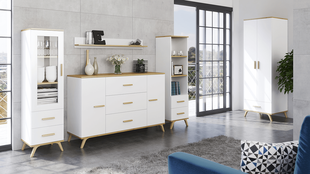 FRONTI Obývací sestava RALF D Bílá + dub artisan