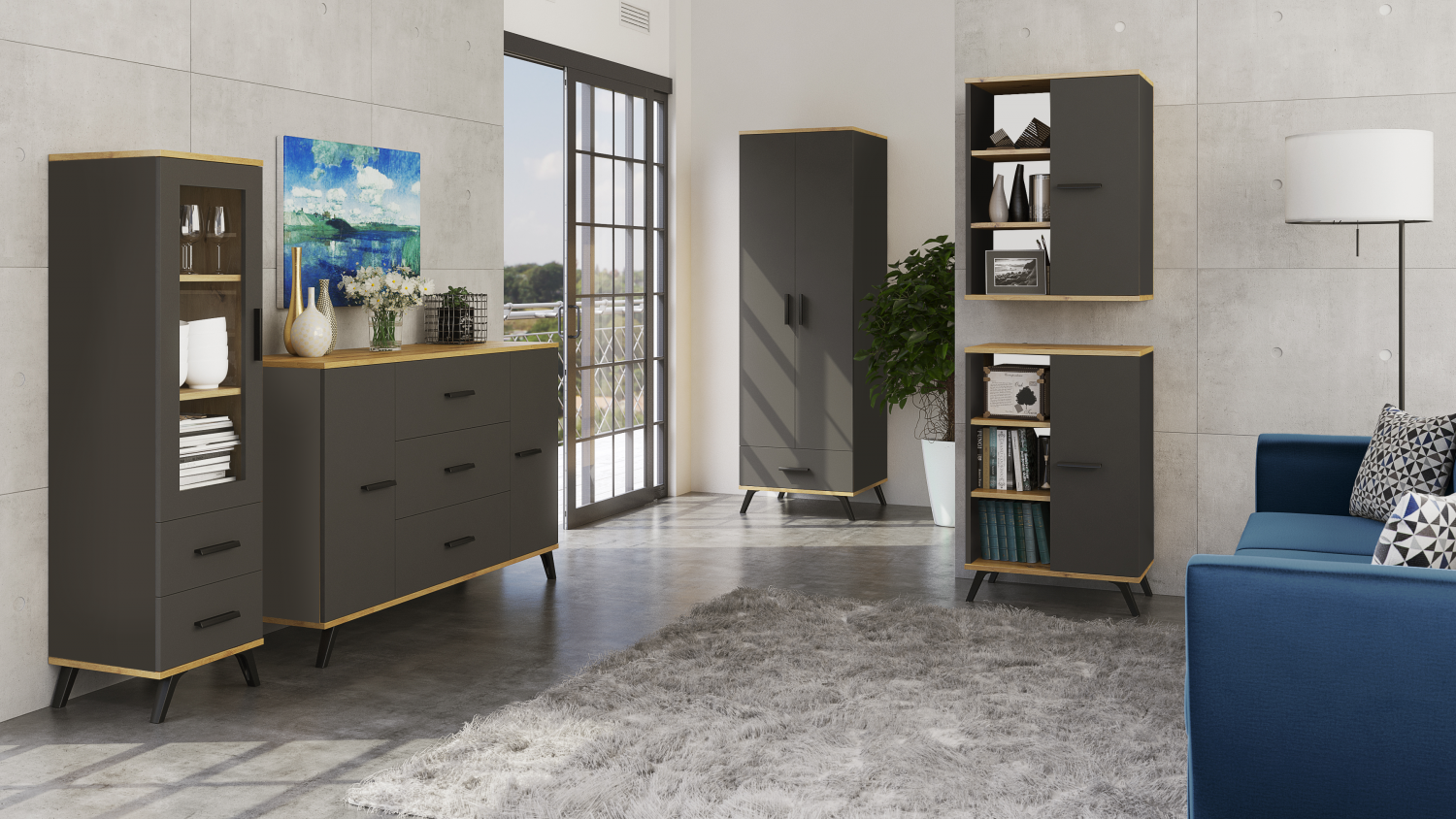 FRONTI Obývací sestava RALF F Grafit + dub artisan