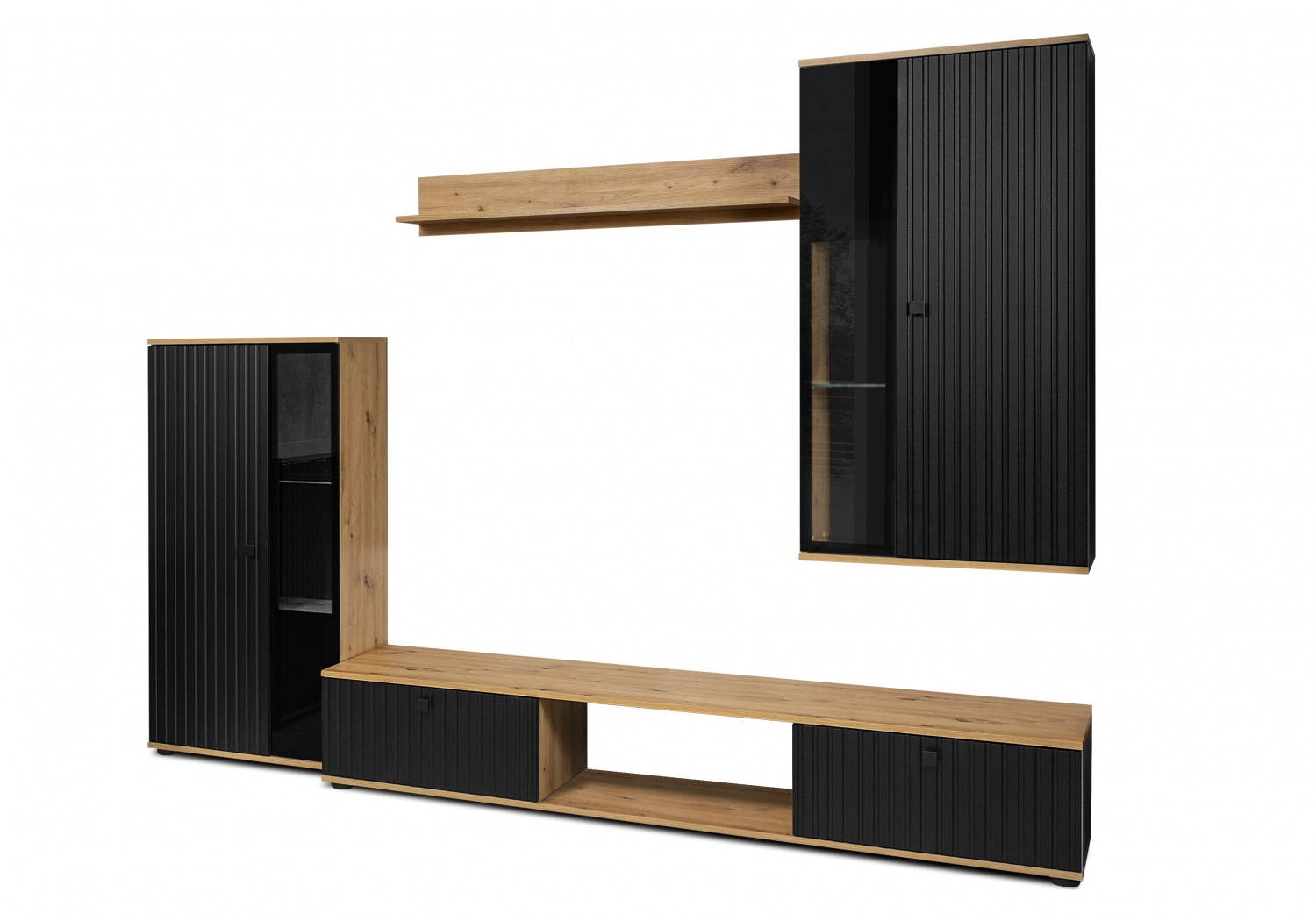 FRONTI Obývací sestava SALSA LAMELE - Černá + dub artisan