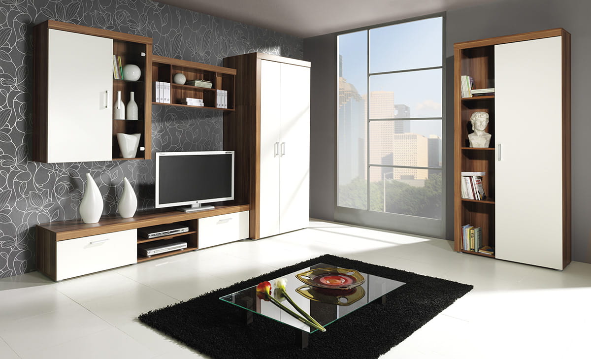 Komponenty sady (šířka / výška / hloubka): SAMBA 4 závěsná skříňka (90/111/35) SAMBA 8 RTV (200/39/45) SAMBA 6 police (110/41/24) Šatní skříň SAMBA 1 (90/203/55) Šatní skříň SAMBA 2 (90/203/35)