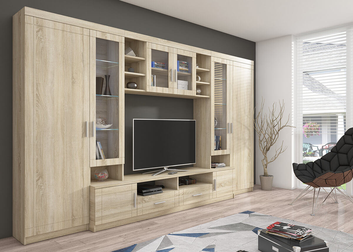 Obývací stěna Relax Barva korpusu: Trufla, Lišta: Wenge, Barva dvířek: Dub - canyon