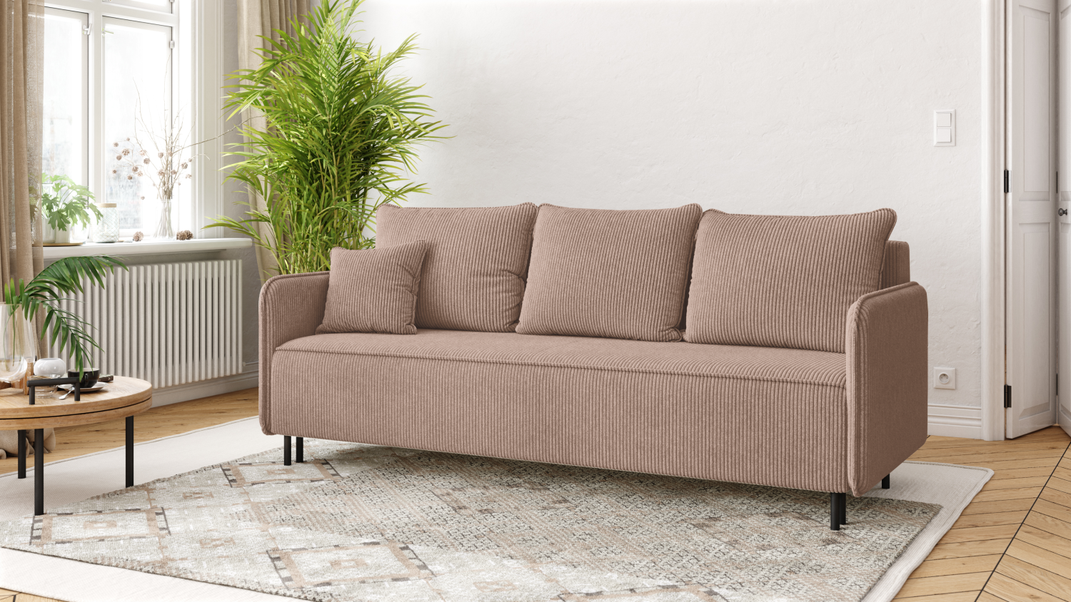 Moderní a pohodlná pohovka Amori - Bonellové pružiny a pevná čalounická pěna T-28 - úložný prostor - plocha na spaní 140x200 cm - odolná manšestrová látka
