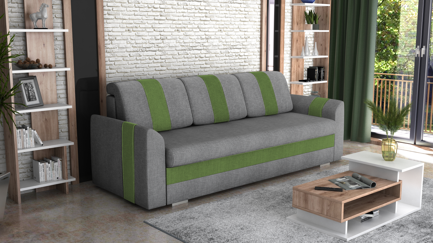 FRONTI Pohovka VIPER šedá-zelená SAWANA 21 + SAWANA 31 17233