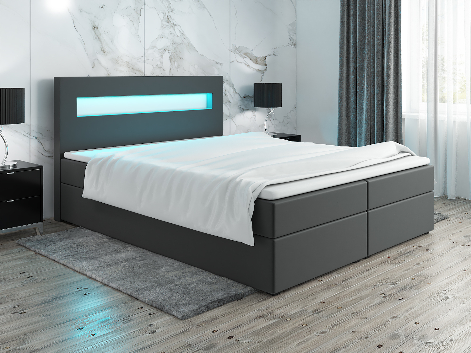 Královský spánek s moderním dotykem Tato elegantní postel, dostupná v devíti barevných variantách, se stane dominantou vaší ložnice. Kombinuje nadčasový design s moderními prvky, které pozvednou každý interiér. Čalouněný rám i vysoké čelo s integrovaným RGB LED osvětlením poskytují nejen pohodlí, ale i jedinečnou atmosféru. Osvětlení si můžete snadno přizpůsobit dle nálady a vytvořit tak dokonalé prostředí pro relaxaci. Díky robustní konstrukci a pečlivě vybraným materiálům je tato postel zárukou stability a dlouhé životnosti. Pohodlí, které si zamilujete Postel je navržena s důrazem na maximální komfort a praktičnost. Nabízí velkorysý prostor pro odpočinek a je ideální pro ty, kteří si potrpí na luxusní spánek. I když si můžete zakoupit postel samostatně, doporučujeme k ní dokoupit kvalitní matraci, která optimálně podpoří vaše tělo a zajistí hluboký a regenerační odpočinek. Ať už si vyberete tmavý, či světlý odstín, tato postel se snadno sladí s vaším stylem a přinese do vašeho domova pocit pohody a luxusu. UPOZORNĚNÍ: U tohoto produktu vyžadujeme platbu předem. NELZE objednat na dobírku. PROVEDENÍ Vrchní matrace není v ceně - možnost doobjednat Konstrukce vyrobena z kvalitní laminované desky a dřevěných prvků zaručující odolnost postele RGB LED osvětlení v opěrce Obsahuje 2 úložné prostory na ložní prádlo Matrace vyrobena z Bonellových pružin Automatický mechanismus usnadňující otevírání Postel potažená ekokůží Soft ROZMĚRY Hloubka - 200 cm Šířka - 180 cm Výška - 115 cm Výška spací plochy - 50 cm Rozměrová tolerance +/- 3 cm.
