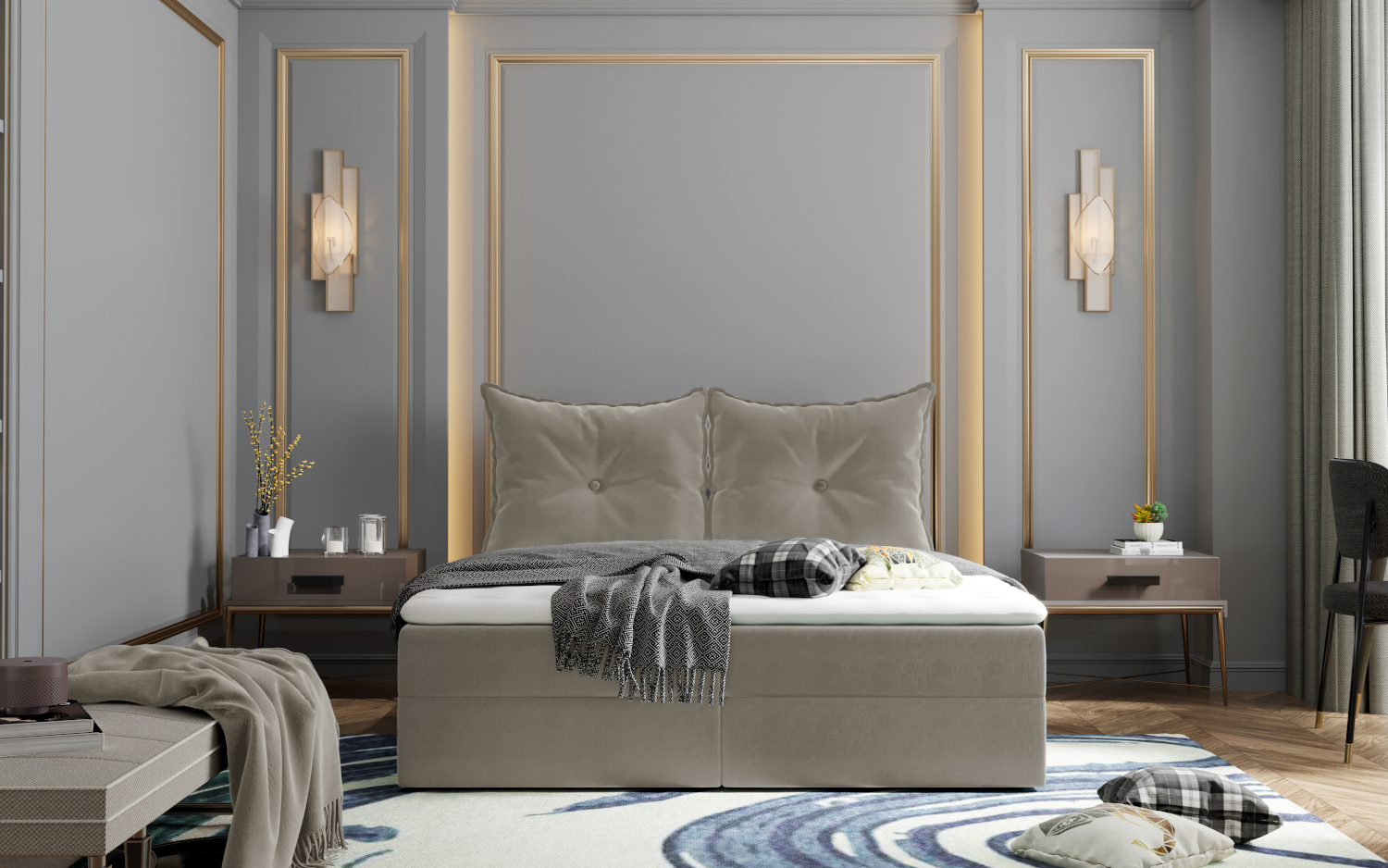 Domů Nábytek Ložnice Postele a futony Postele FRONTI Postel 8 140x200 s úložným prostorem - béžová - Opera Pearl