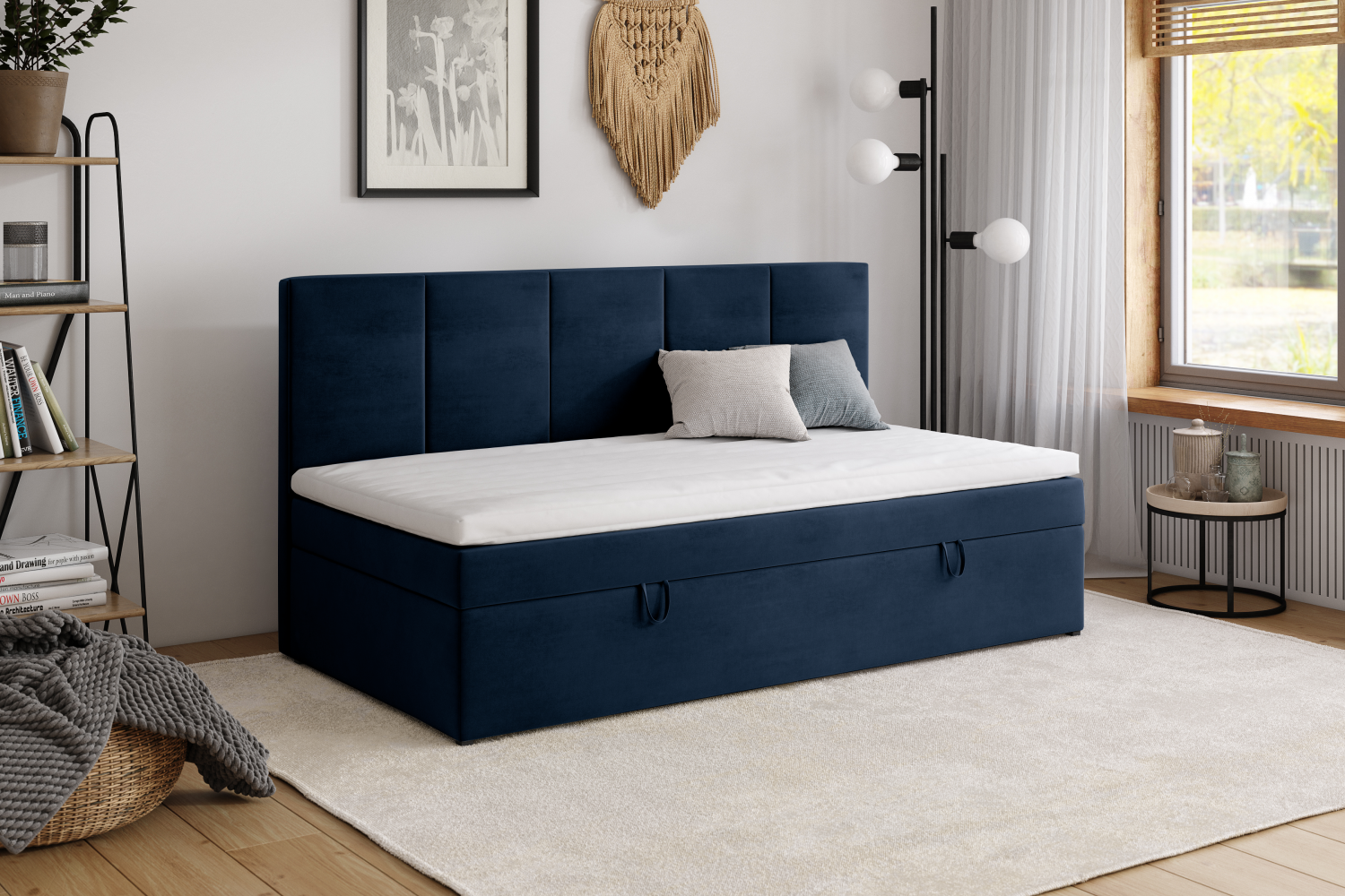 ROZMĚRY: Šířka: 108 cm Délka: 200 cm Výška čela postele: 105 cm Výška spací plochy: 43 cm Plocha na spaní: 100 x 200 cm