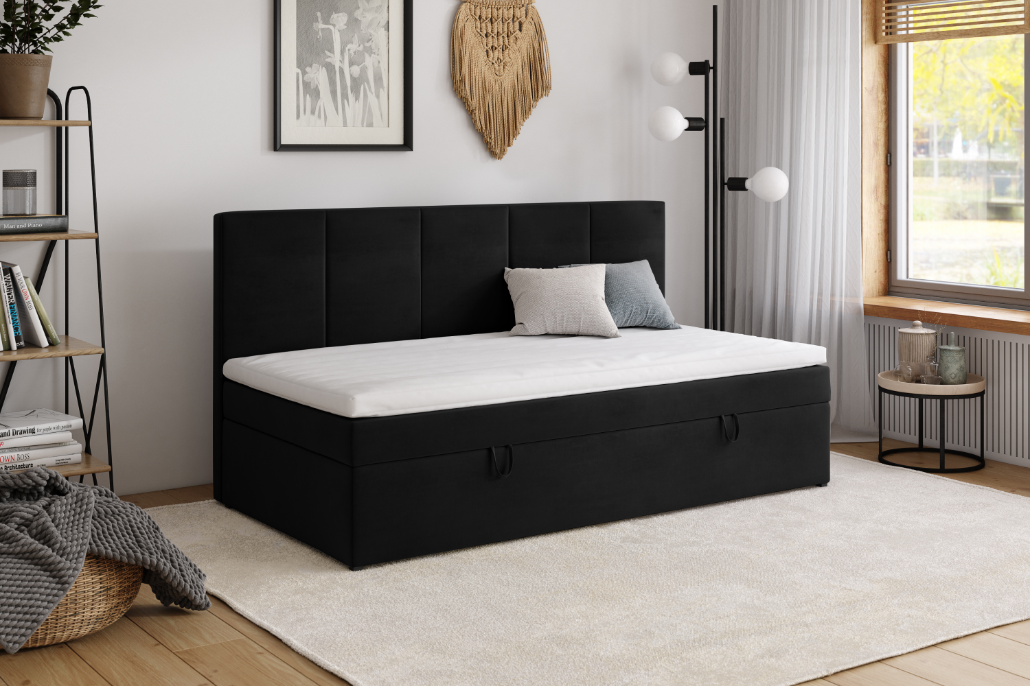 ROZMĚRY: Šířka: 88 cm Délka: 200 cm Výška čela postele: 105 cm Výška spací plochy: 43 cm Plocha na spaní: 80 x 200 cm