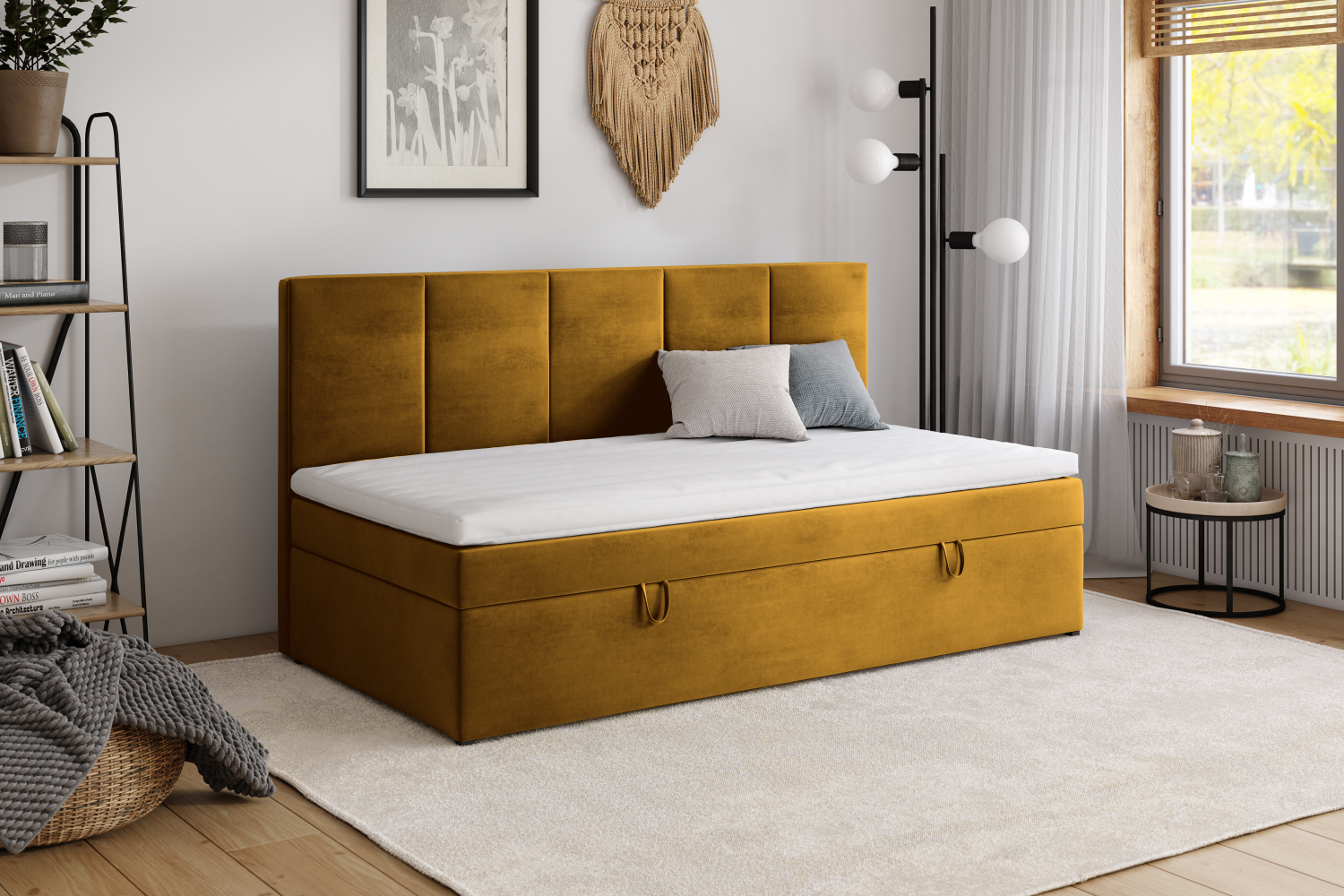 ROZMĚRY: Šířka: 88 cm Délka: 200 cm Výška čela postele: 105 cm Výška spací plochy: 43 cm Plocha na spaní: 80 x 200 cm