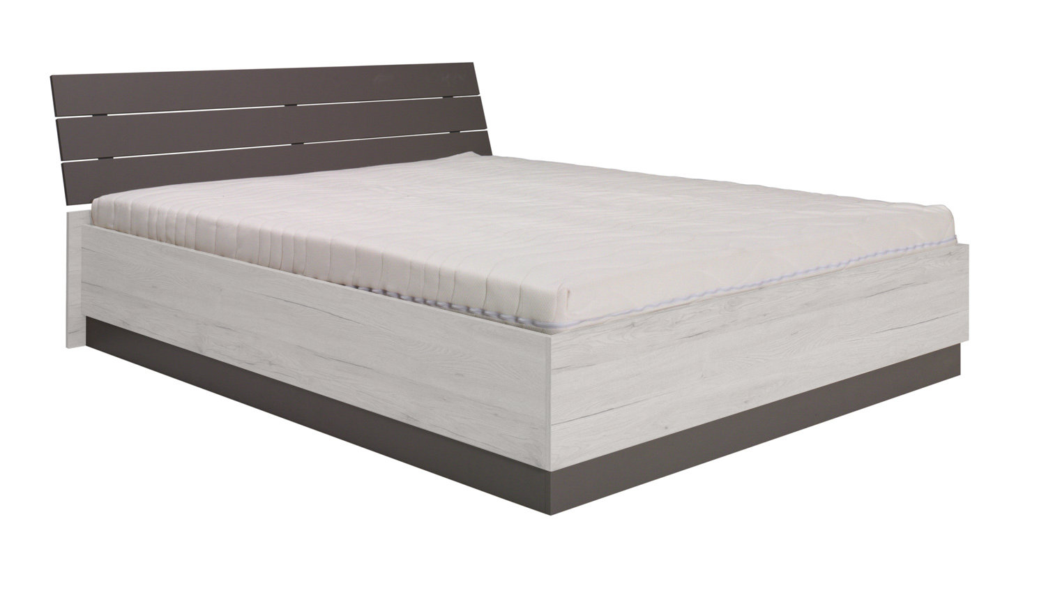 Postel pro matraci o rozměrech 160 x 200. Rozměry: výška 77 cm šířka 174 cm hloubka 210 cm Matrace 160 x 200 cm (za příplatek) Barva: borovice norská / šedá Ložnice "Dione" je nejnovější nabídkou z továrny na nábytek Maridex. Zahrnuje řadu praktických prvků, včetně prostorná skříň s posuvnými dveřmi, LED osvětlením a hliníkovými bočními profily, stejně jako pohodlná postel se zvýšeným rámem a nádobou na ložní prádlo, komoda a noční stolky. Systém je vyroben z vysoce kvalitní laminované desky borovice noeská. ABS hrana chrání hrany před mechanickým poškozením. Prvky systému jsou ideální pro vybavení moderní ložnice. Osvětlení použité ve skříni a výběr vhodných doplňků vytvoří jedinečný a útulný interiér.