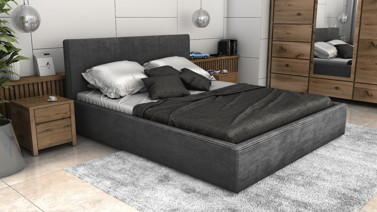 Postel LINCOLN 120x200 tmavěšedá s úložným prostorem - manšestr - LINCOLN 90 Čalouněná postel LINCOLN 120x200 je naším návrhem na luxusní a funkční postel do ložnice, která jistě splní všechna vaše očekávání. Jedná se o mimořádně pohodlný kus nábytku, navržený s ohledem na maximální pohodlí a praktičnost. Postel se vyznačuje mimořádně prostorným úložným prostorem na lůžkoviny v přední části postele, který umožňuje uložení nezbytných věcí každodenní potřeby - perfektní řešení pro ty, kteří oceňují pořádek a funkčnost v ložnici. Jedním z klíčových prvků postele LINCOLN je její odolný rám. Je vyroben z masivního habrového dřeva a je navíc vyztužený kovovými prvky. Rám díky tomu odolá zatížení až 400 kg, což zaručuje odolnost a stabilitu postele po mnoho let používání. Postel LINCOLN je kus nábytku, který se skvěle hodí do klasického i moderního interiéru. Díky jeho univerzálního designu se může stát ústředním bodem každé ložnice a dodat jí eleganci a charakter. Jednou z největších předností této postele je možnost výběru velikosti a barvy, což umožňuje dokonalé přizpůsobení nábytku individuálním potřebám a preferencím zákazníka. Tato čalouněná postel je výbornou volbou pro ty, kteří hledají tu pravou kombinaci pohodlí, odolnosti a elegance. Její pevná konstrukce, praktický zásobník na lůžkoviny a možnost individuálního nastavení z ní dělají produkt, který splní očekávání i těch nejnáročnějších uživatelů. Abychom zdůraznili jedinečný charakter produktu, zvolili jsme pro potah postele látku Lincoln. Jedná se o extrémně univerzální látku, která dokonale podtrhuje charakter nábytku a dodává mu jedinečný vzhled. Látka Lincoln připomíná široký manšestr o šířce přibližně 10 mm s dlouhým vláknem, který jí dodává příjemnou a jemnou strukturu Soft Touch. Díky pevné podložce a velmi vysoké oděruvzdornosti tato látka zajišťuje trvanlivost a elegantní vzhled nábytku. Výběrem postele LINCOLN investujete do pohodlí a estetiky vaší ložnice na mnoho let. PROVEDENÍ Matrace není v ceně zahrnuta - nutno objednat zvlášť Postel je vybavena dřevěným rámem, který lze zvednout, rám pod matrací tvoří 32 pružinových lamel, které mají pozitivní vliv na komfort spánku. Rám se zvedá pomocí kovového pružinového mechanismu Konstrukce je vyrobena z kvalitní dřevotřísky a dřevěných prvků, což zaručuje odolnost postele K výrobě našich nábytkových konstrukcí používáme pouze osvědčené polotovary ze spolehlivých zdrojů Kvalitní a estetické zpracování, významná část výroby probíhá na přesných CNC strojích Odolná tkanina (test Mardindale >100 000), splňuje požadavky na hotelový nábytek Prošívaná opěrka hlavy s vysokopevnostními nitěmi Uspořádání vzoru prošívání se může lišit v závislosti na šířce opěrky hlavy Po zvednutí rámu postele je prostor rozdělen přepážkou. Zadní část přepážky nemá spodní desku, pouze přední má nádobu na lůžkoviny. Maximální zatížení rámu je 400 kg Výrobek pro vlastní montáž, srozumitelný montážní návod a příslušenství v sadě zaručují rychlou a bezproblémovou montáž ROZMĚRY délka - 208 cm šířka - 130 cm výška čela 86 cm výška bočnice 30 cm plocha na spaní - 120x200 cm Rozměrová tolerance +/- 3cm