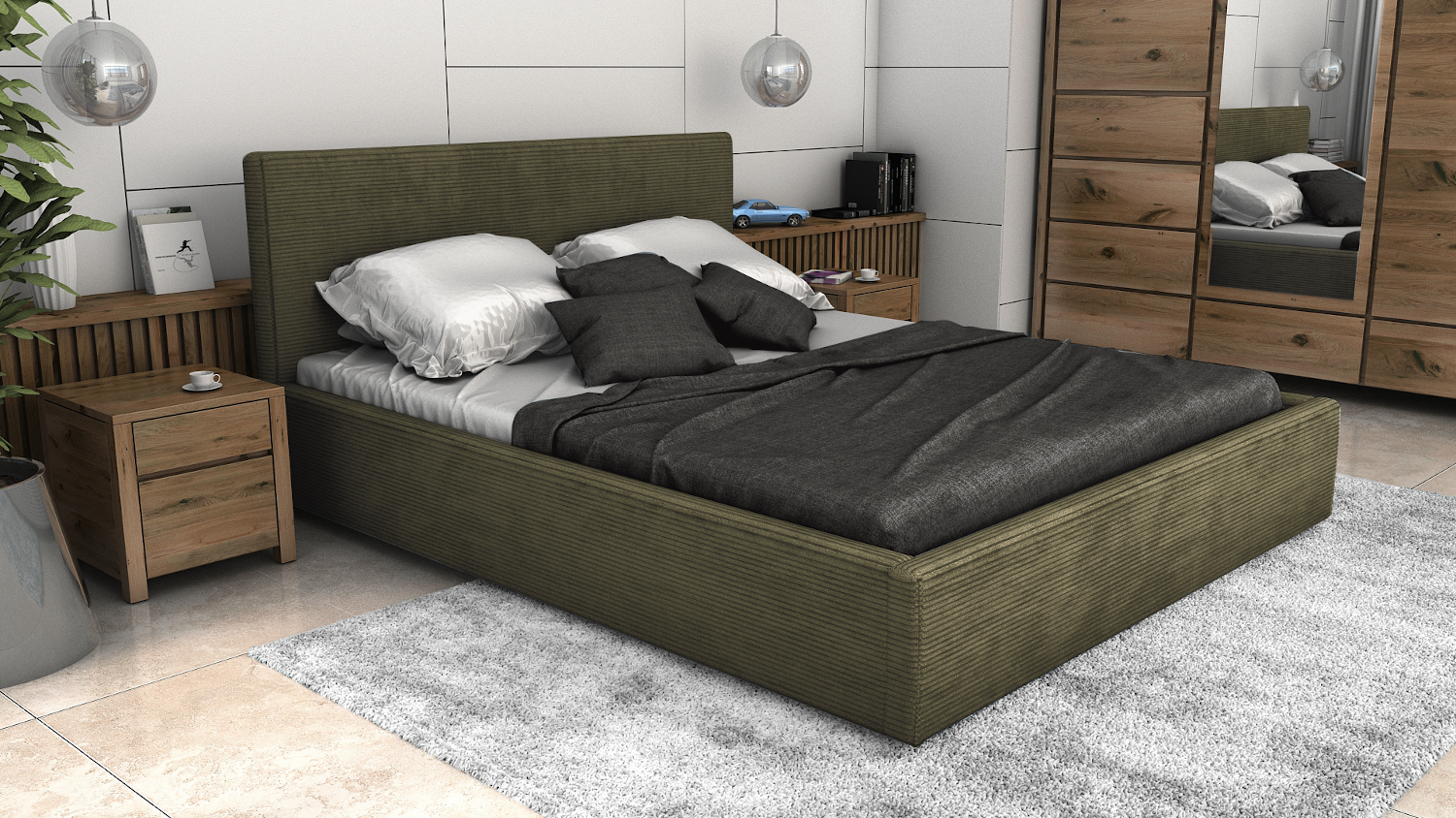 Postel LINCOLN 140x200 olivová s úložným prostorem - manšestr - LINCOLN 37 Čalouněná postel LINCOLN 140x200 je naším návrhem na luxusní a funkční postel do ložnice, která jistě splní všechna vaše očekávání. Jedná se o mimořádně pohodlný kus nábytku, navržený s ohledem na maximální pohodlí a praktičnost. Postel se vyznačuje mimořádně prostorným úložným prostorem na lůžkoviny v přední části postele, který umožňuje uložení nezbytných věcí každodenní potřeby - perfektní řešení pro ty, kteří oceňují pořádek a funkčnost v ložnici. Jedním z klíčových prvků postele LINCOLN je její odolný rám. Je vyroben z masivního habrového dřeva a je navíc vyztužený kovovými prvky. Rám díky tomu odolá zatížení až 400 kg, což zaručuje odolnost a stabilitu postele po mnoho let používání. Postel LINCOLN je kus nábytku, který se skvěle hodí do klasického i moderního interiéru. Díky jeho univerzálního designu se může stát ústředním bodem každé ložnice a dodat jí eleganci a charakter. Jednou z největších předností této postele je možnost výběru velikosti a barvy, což umožňuje dokonalé přizpůsobení nábytku individuálním potřebám a preferencím zákazníka. Tato čalouněná postel je výbornou volbou pro ty, kteří hledají tu pravou kombinaci pohodlí, odolnosti a elegance. Její pevná konstrukce, praktický zásobník na lůžkoviny a možnost individuálního nastavení z ní dělají produkt, který splní očekávání i těch nejnáročnějších uživatelů. Abychom zdůraznili jedinečný charakter produktu, zvolili jsme pro potah postele látku Lincoln. Jedná se o extrémně univerzální látku, která dokonale podtrhuje charakter nábytku a dodává mu jedinečný vzhled. Látka Lincoln připomíná široký manšestr o šířce přibližně 10 mm s dlouhým vláknem, který jí dodává příjemnou a jemnou strukturu Soft Touch. Díky pevné podložce a velmi vysoké oděruvzdornosti tato látka zajišťuje trvanlivost a elegantní vzhled nábytku. Výběrem postele LINCOLN investujete do pohodlí a estetiky vaší ložnice na mnoho let. PROVEDENÍ Matrace není v ceně zahrnuta - nutno objednat zvlášť Postel je vybavena dřevěným rámem, který lze zvednout, rám pod matrací tvoří 32 pružinových lamel, které mají pozitivní vliv na komfort spánku. Rám se zvedá pomocí kovového pružinového mechanismu Konstrukce je vyrobena z kvalitní dřevotřísky a dřevěných prvků, což zaručuje odolnost postele K výrobě našich nábytkových konstrukcí používáme pouze osvědčené polotovary ze spolehlivých zdrojů Kvalitní a estetické zpracování, významná část výroby probíhá na přesných CNC strojích Odolná tkanina (test Mardindale >100 000), splňuje požadavky na hotelový nábytek Prošívaná opěrka hlavy s vysokopevnostními nitěmi Uspořádání vzoru prošívání se může lišit v závislosti na šířce opěrky hlavy Po zvednutí rámu postele je prostor rozdělen přepážkou. Zadní část přepážky nemá spodní desku, pouze přední má nádobu na lůžkoviny. Maximální zatížení rámu je 400 kg Výrobek pro vlastní montáž, srozumitelný montážní návod a příslušenství v sadě zaručují rychlou a bezproblémovou montáž ROZMĚRY délka - 208 cm šířka - 150 cm výška čela 86 cm výška bočnice 30 cm plocha na spaní - 140x200 cm Rozměrová tolerance +/- 3cm
