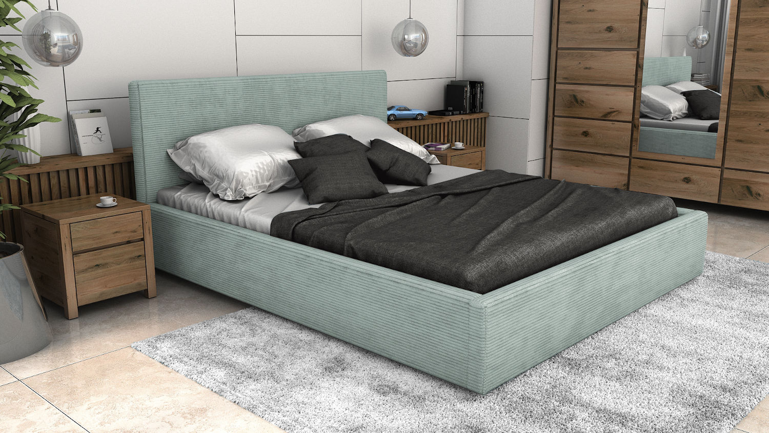 Postel LINCOLN 140x200 zelená s úložným prostorem - manšestr - LINCOLN 72 Čalouněná postel LINCOLN 140x200 je naším návrhem na luxusní a funkční postel do ložnice, která jistě splní všechna vaše očekávání. Jedná se o mimořádně pohodlný kus nábytku, navržený s ohledem na maximální pohodlí a praktičnost. Postel se vyznačuje mimořádně prostorným úložným prostorem na lůžkoviny v přední části postele, který umožňuje uložení nezbytných věcí každodenní potřeby - perfektní řešení pro ty, kteří oceňují pořádek a funkčnost v ložnici. Jedním z klíčových prvků postele LINCOLN je její odolný rám. Je vyroben z masivního habrového dřeva a je navíc vyztužený kovovými prvky. Rám díky tomu odolá zatížení až 400 kg, což zaručuje odolnost a stabilitu postele po mnoho let používání. Postel LINCOLN je kus nábytku, který se skvěle hodí do klasického i moderního interiéru. Díky jeho univerzálního designu se může stát ústředním bodem každé ložnice a dodat jí eleganci a charakter. Jednou z největších předností této postele je možnost výběru velikosti a barvy, což umožňuje dokonalé přizpůsobení nábytku individuálním potřebám a preferencím zákazníka. Tato čalouněná postel je výbornou volbou pro ty, kteří hledají tu pravou kombinaci pohodlí, odolnosti a elegance. Její pevná konstrukce, praktický zásobník na lůžkoviny a možnost individuálního nastavení z ní dělají produkt, který splní očekávání i těch nejnáročnějších uživatelů. Abychom zdůraznili jedinečný charakter produktu, zvolili jsme pro potah postele látku Lincoln. Jedná se o extrémně univerzální látku, která dokonale podtrhuje charakter nábytku a dodává mu jedinečný vzhled. Látka Lincoln připomíná široký manšestr o šířce přibližně 10 mm s dlouhým vláknem, který jí dodává příjemnou a jemnou strukturu Soft Touch. Díky pevné podložce a velmi vysoké oděruvzdornosti tato látka zajišťuje trvanlivost a elegantní vzhled nábytku. Výběrem postele LINCOLN investujete do pohodlí a estetiky vaší ložnice na mnoho let. PROVEDENÍ Matrace není v ceně zahrnuta - nutno objednat zvlášť Postel je vybavena dřevěným rámem, který lze zvednout, rám pod matrací tvoří 32 pružinových lamel, které mají pozitivní vliv na komfort spánku. Rám se zvedá pomocí kovového pružinového mechanismu Konstrukce je vyrobena z kvalitní dřevotřísky a dřevěných prvků, což zaručuje odolnost postele K výrobě našich nábytkových konstrukcí používáme pouze osvědčené polotovary ze spolehlivých zdrojů Kvalitní a estetické zpracování, významná část výroby probíhá na přesných CNC strojích Odolná tkanina (test Mardindale >100 000), splňuje požadavky na hotelový nábytek Prošívaná opěrka hlavy s vysokopevnostními nitěmi Uspořádání vzoru prošívání se může lišit v závislosti na šířce opěrky hlavy Po zvednutí rámu postele je prostor rozdělen přepážkou. Zadní část přepážky nemá spodní desku, pouze přední má nádobu na lůžkoviny. Maximální zatížení rámu je 400 kg Výrobek pro vlastní montáž, srozumitelný montážní návod a příslušenství v sadě zaručují rychlou a bezproblémovou montáž ROZMĚRY délka - 208 cm šířka - 150 cm výška čela 86 cm výška bočnice 30 cm plocha na spaní - 140x200 cm Rozměrová tolerance +/- 3cm