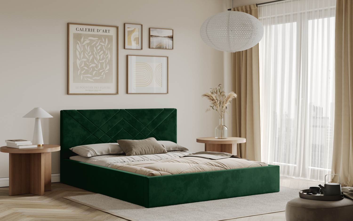 FRONTI Postel PADWA 120x200 zelená s úložným prostorem