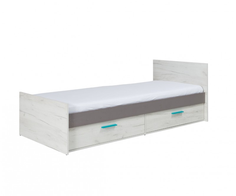 Rozměry: výška 70 cm šířka 100 cm délka 204 cm Matrace 90x200 cm (za příplatek) Barva: dub craft bílý / šedý Možnost volby barvy úchytů. Systém mládeže Rest zahrnuje praktické police (otevřené i uzavřené). Kromě toho systém obsahuje také komodu (s hlubokými zásuvkami pro plnou výšku), pohodlnou postel se 4 zásuvkami a prostorné skříně.Prvky ze systému Rest byly velmi oblíbené na posledním veletrhu nábytku v Poznani - Meble Polska 2016.