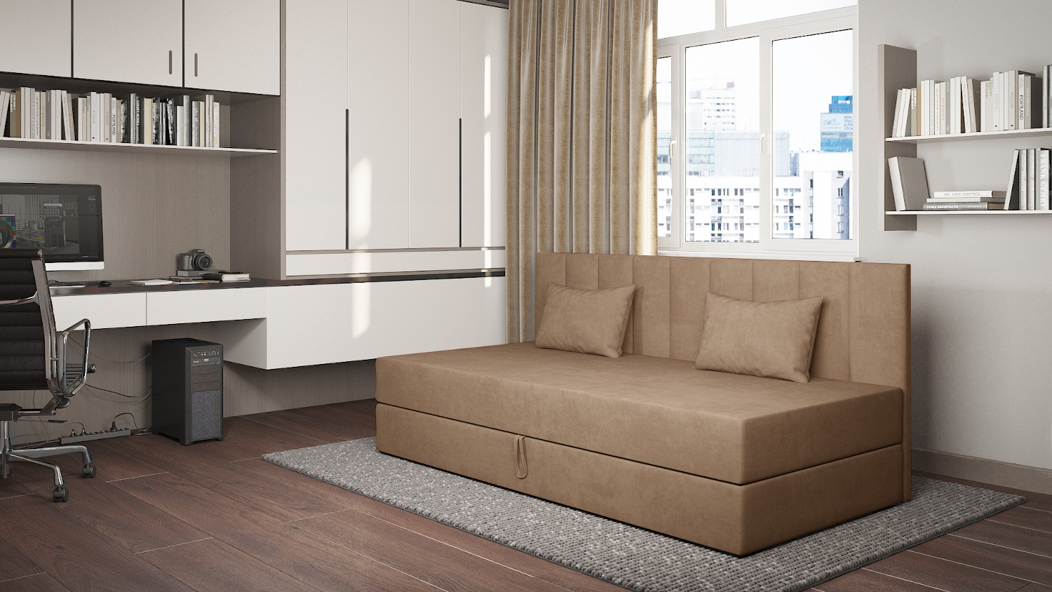 Jedinečná postel IVET: Spojení stylu a praktičnosti Tato postel s jednoduchým a moderním designem promění každou místnost na stylový a pohodlný prostor. Díky svým čistým liniím a elegantnímu vzhledu se snadno začlení do různých stylů interiéru, od minimalistického až po klasický. Postel je potažena měkkou látkou, která je příjemná na dotek a zaručuje maximální pohodlí. Její čalouněné čelo s vertikálními liniemi dodává posteli na eleganci a poskytuje pohodlnou oporu pro odpočinek, ať už při čtení nebo sledování televize. Dokonalá kombinace pohodlí a úložného prostoru Kromě estetického vzhledu postel IVET nabízí i skvělé praktické vlastnosti. Pod matrací se skrývá rozsáhlý úložný prostor, ideální pro uschování ložního prádla, sezónního oblečení nebo dalších věcí. Díky tomuto řešení ušetříte místo a udržíte v pokoji pořádek. Postel je k dispozici v deseti barevných variantách, což vám dává možnost vybrat si odstín, který nejlépe ladí s vaším interiérem. Ať už toužíte po výrazném akcentu nebo spíše decentním kousku, IVET je ideální volbou pro každého, kdo hledá stylovou a funkční postel. UPOZORNĚNÍ: U tohoto produktu vyžadujeme platbu předem. NELZE objednat na dobírku. PROVEDENÍ Postel vybavena Bonellovými pružinami Objemný úložný prostor na lůžkoviny Sametová látka ROZMĚRY Spací plocha - 90x200 cm Hloubka - 200 cm Šířka - 97 cm Výška spací plochy - 46 cm Celková výška - 90 cm Rozměrová tolerance +/- 3 cm.