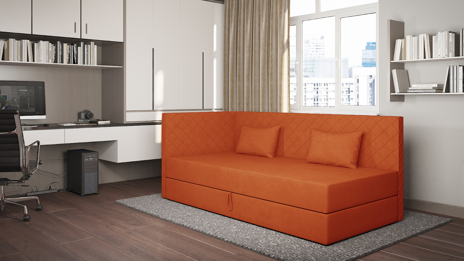 Jedinečná postel IVET: Spojení stylu a praktičnosti Tato postel s jednoduchým a moderním designem promění každou místnost na stylový a pohodlný prostor. Díky svým čistým liniím a elegantnímu vzhledu se snadno začlení do různých stylů interiéru, od minimalistického až po klasický. Postel je potažena měkkou látkou, která je příjemná na dotek a zaručuje maximální pohodlí. Její čalouněné čelo s vertikálními liniemi dodává posteli na eleganci a poskytuje pohodlnou oporu pro odpočinek, ať už při čtení nebo sledování televize. Dokonalá kombinace pohodlí a úložného prostoru Kromě estetického vzhledu postel IVET nabízí i skvělé praktické vlastnosti. Pod matrací se skrývá rozsáhlý úložný prostor, ideální pro uschování ložního prádla, sezónního oblečení nebo dalších věcí. Díky tomuto řešení ušetříte místo a udržíte v pokoji pořádek. Postel je k dispozici v deseti barevných variantách, což vám dává možnost vybrat si odstín, který nejlépe ladí s vaším interiérem. Ať už toužíte po výrazném akcentu nebo spíše decentním kousku, IVET je ideální volbou pro každého, kdo hledá stylovou a funkční postel. Roh postele je univerzální, možnost sestavení jako pravá i levá varianta. UPOZORNĚNÍ: U tohoto produktu vyžadujeme platbu předem. NELZE objednat na dobírku. PROVEDENÍ Postel vybavena Bonellovými pružinami Objemný úložný prostor na lůžkoviny Sametová látka Univerzální roh ROZMĚRY Spací plocha - 90x200 cm Hloubka - 207 cm Šířka - 97 cm Výška spací plochy - 46 cm Celková výška - 90 cm Rozměrová tolerance +/- 3 cm.