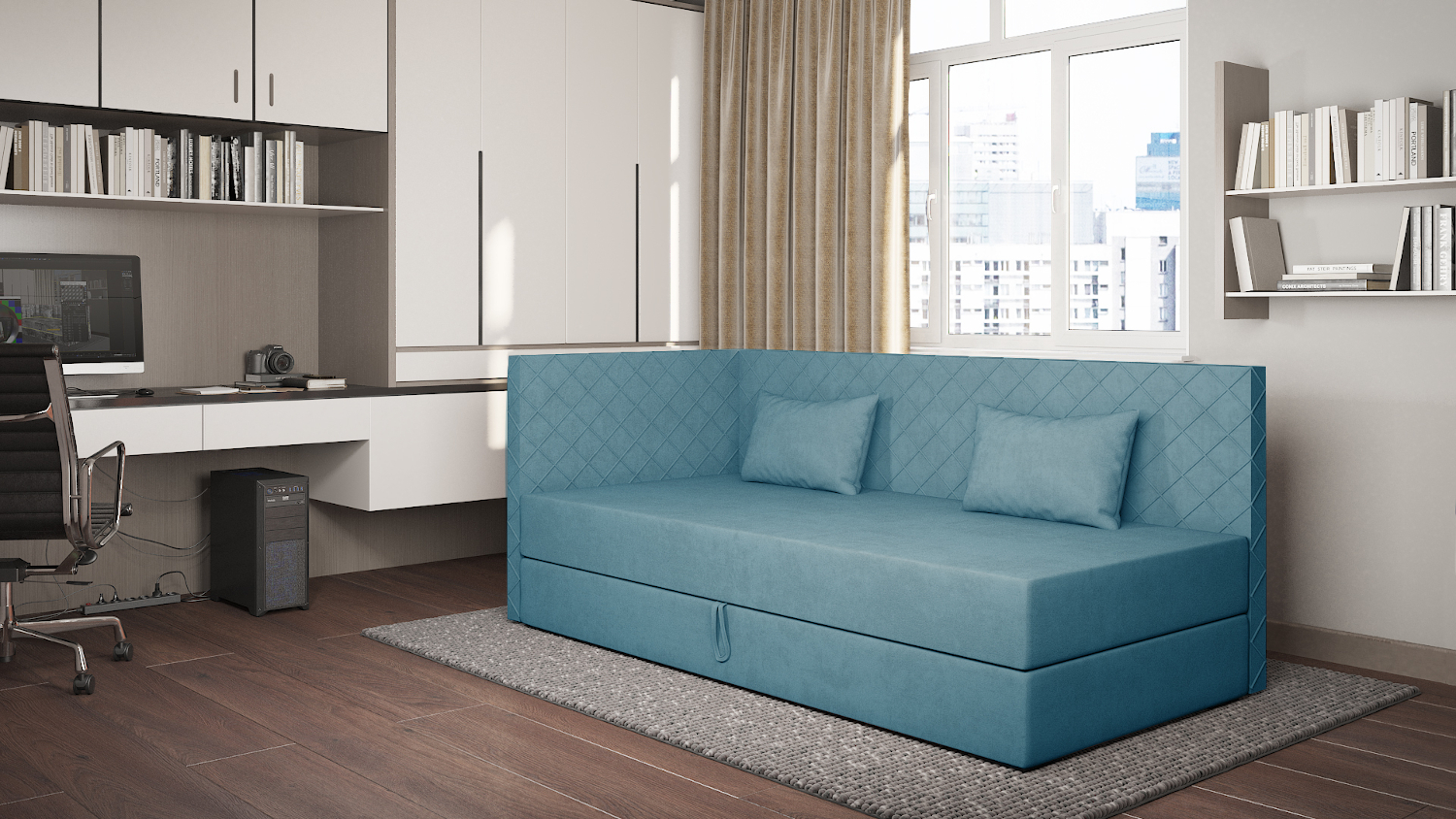 Jedinečná postel IVET: Spojení stylu a praktičnosti Tato postel s jednoduchým a moderním designem promění každou místnost na stylový a pohodlný prostor. Díky svým čistým liniím a elegantnímu vzhledu se snadno začlení do různých stylů interiéru, od minimalistického až po klasický. Postel je potažena měkkou látkou, která je příjemná na dotek a zaručuje maximální pohodlí. Její čalouněné čelo s vertikálními liniemi dodává posteli na eleganci a poskytuje pohodlnou oporu pro odpočinek, ať už při čtení nebo sledování televize. Dokonalá kombinace pohodlí a úložného prostoru Kromě estetického vzhledu postel IVET nabízí i skvělé praktické vlastnosti. Pod matrací se skrývá rozsáhlý úložný prostor, ideální pro uschování ložního prádla, sezónního oblečení nebo dalších věcí. Díky tomuto řešení ušetříte místo a udržíte v pokoji pořádek. Postel je k dispozici v deseti barevných variantách, což vám dává možnost vybrat si odstín, který nejlépe ladí s vaším interiérem. Ať už toužíte po výrazném akcentu nebo spíše decentním kousku, IVET je ideální volbou pro každého, kdo hledá stylovou a funkční postel. Roh postele je univerzální, možnost sestavení jako pravá i levá varianta. UPOZORNĚNÍ: U tohoto produktu vyžadujeme platbu předem. NELZE objednat na dobírku. PROVEDENÍ Postel vybavena Bonellovými pružinami Objemný úložný prostor na lůžkoviny Sametová látka Univerzální roh ROZMĚRY Spací plocha - 90x200 cm Hloubka - 207 cm Šířka - 97 cm Výška spací plochy - 46 cm Celková výška - 90 cm Rozměrová tolerance +/- 3 cm.