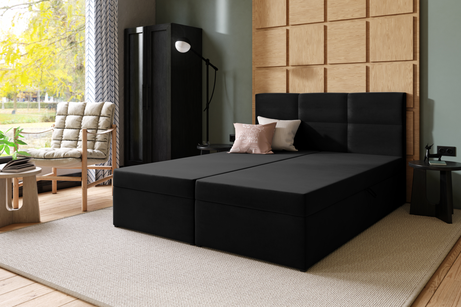 FRONTI Postel RIMINI 140x200 s úložným prostorem - bouclé - černá