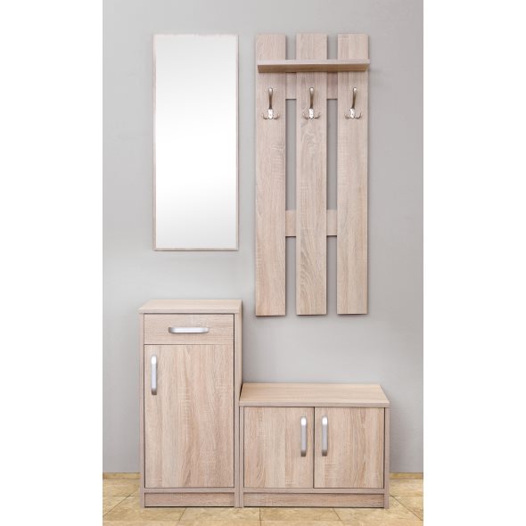 Předsíň WALA Věšák šířka 49 cm výška 120 cm hloubka 24 cm Zrcadlo šířka 37 cm výška 92 cm hloubka 2 cm Skříňka Wala nízka šířka 60 cm výška 43 cm hloubka 37 cm Sříňka Wala vysoká šířka 40 cm výška 80 cm hloubka 37 cm