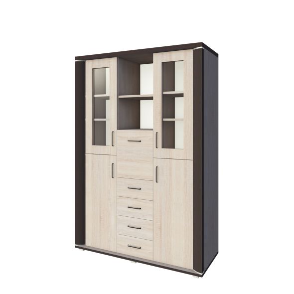 Regál ze systému Laura se 4 dvířky a 4 šuplíky + bar šířka 135 cm výška 188 cm hloubka 40 cm