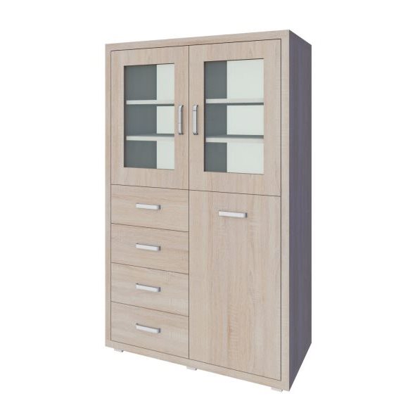 Regál ze systému Margaret se 3 dvířky a 4 šuplíky šířka 100 cm výška 160 cm hloubka 41 cm
