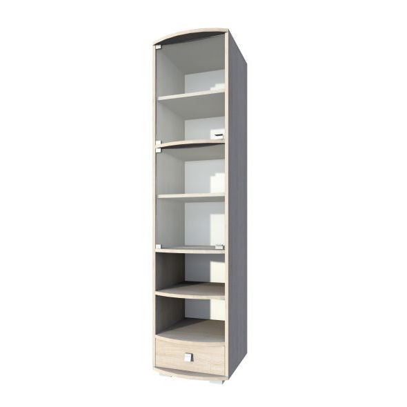 Regál ze systému Naomi se šuplíkem , skleněné dvířka šířka 49 cm výška 200 cm hloubka 40 cm